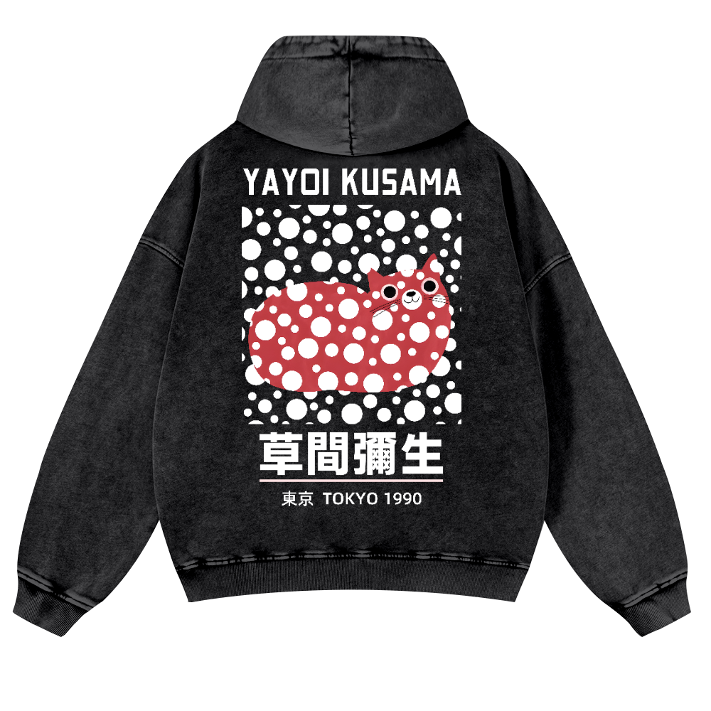 Yayoi Kusama Cat Vintage Washed Cotton Back Art Hoodie
