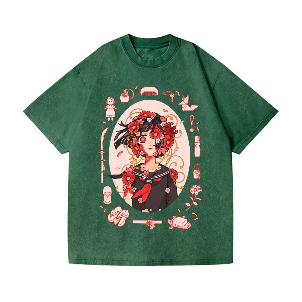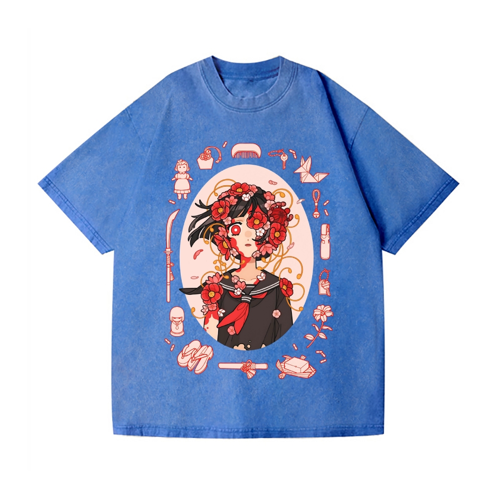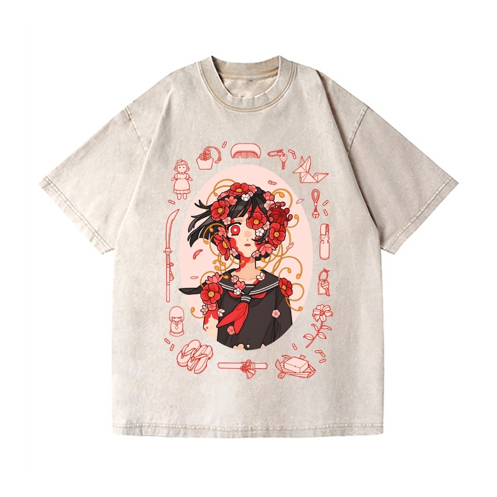 Anime Girl Art Vintage Wash Japanese Design T-Shirt