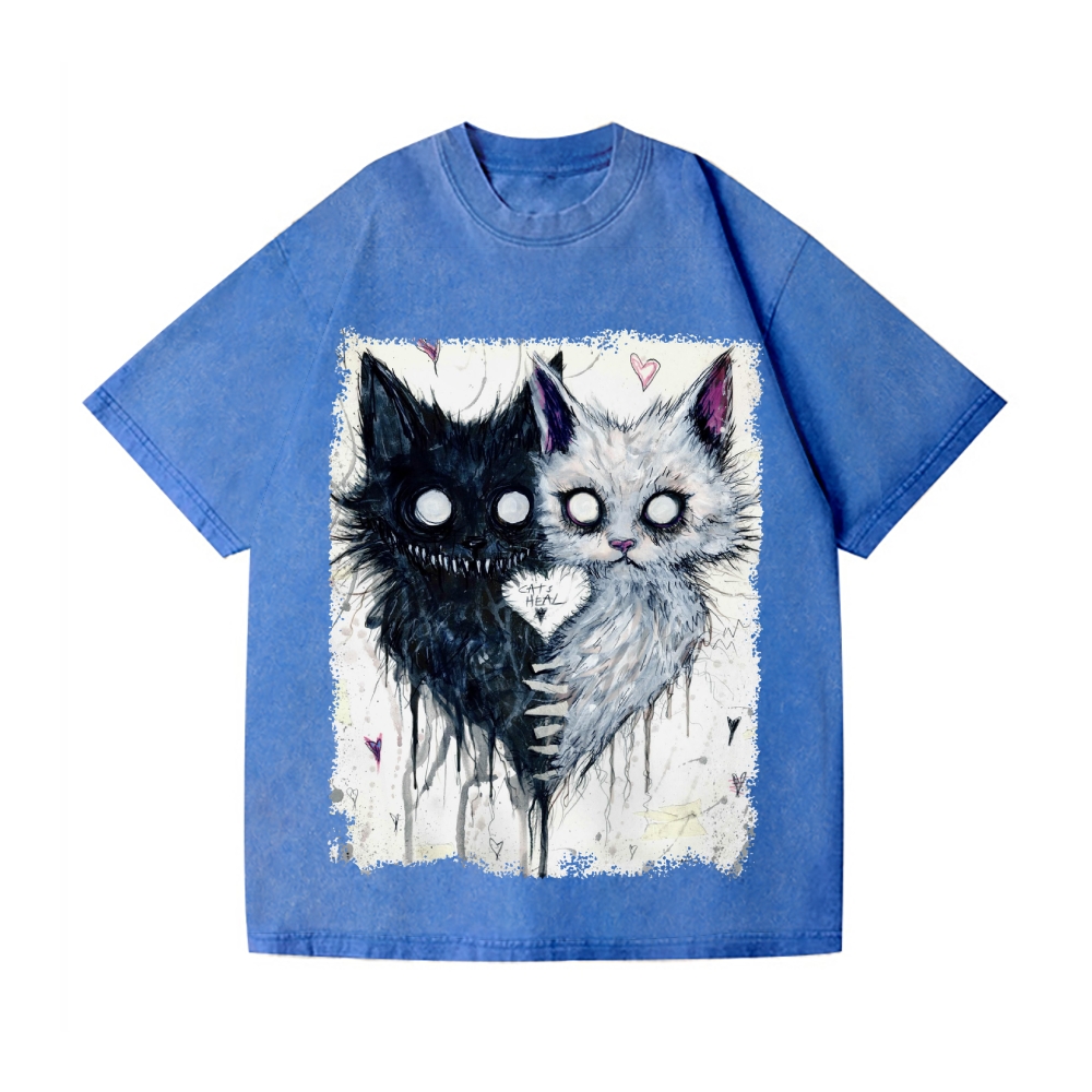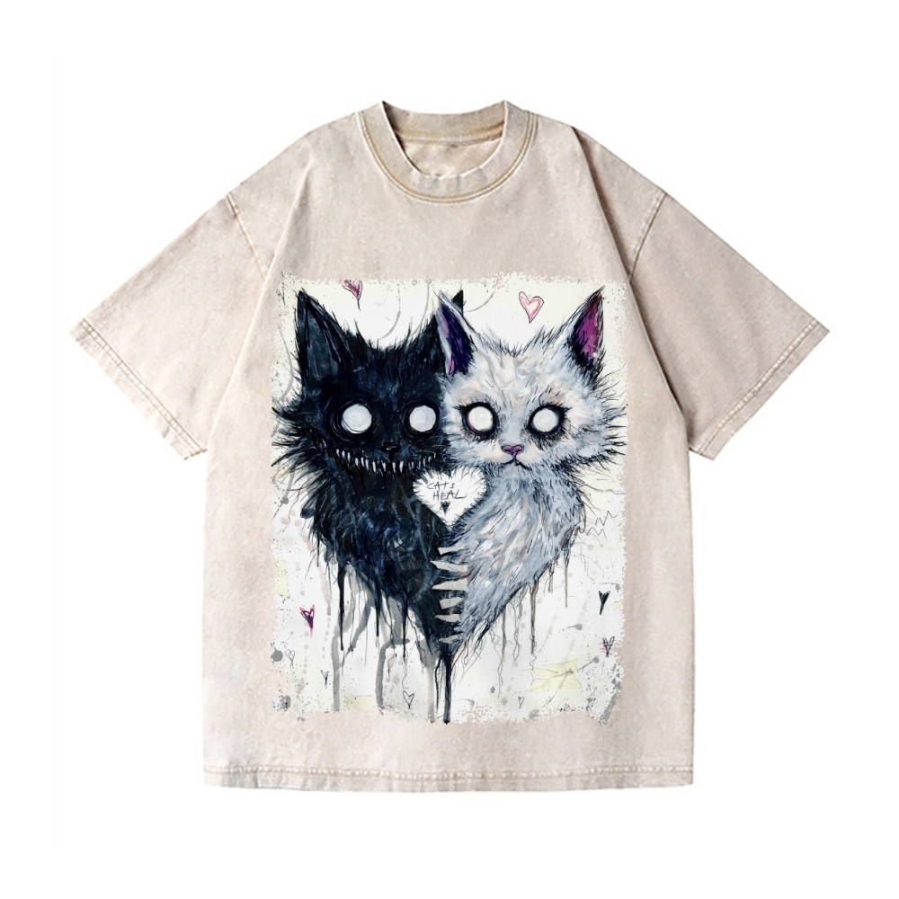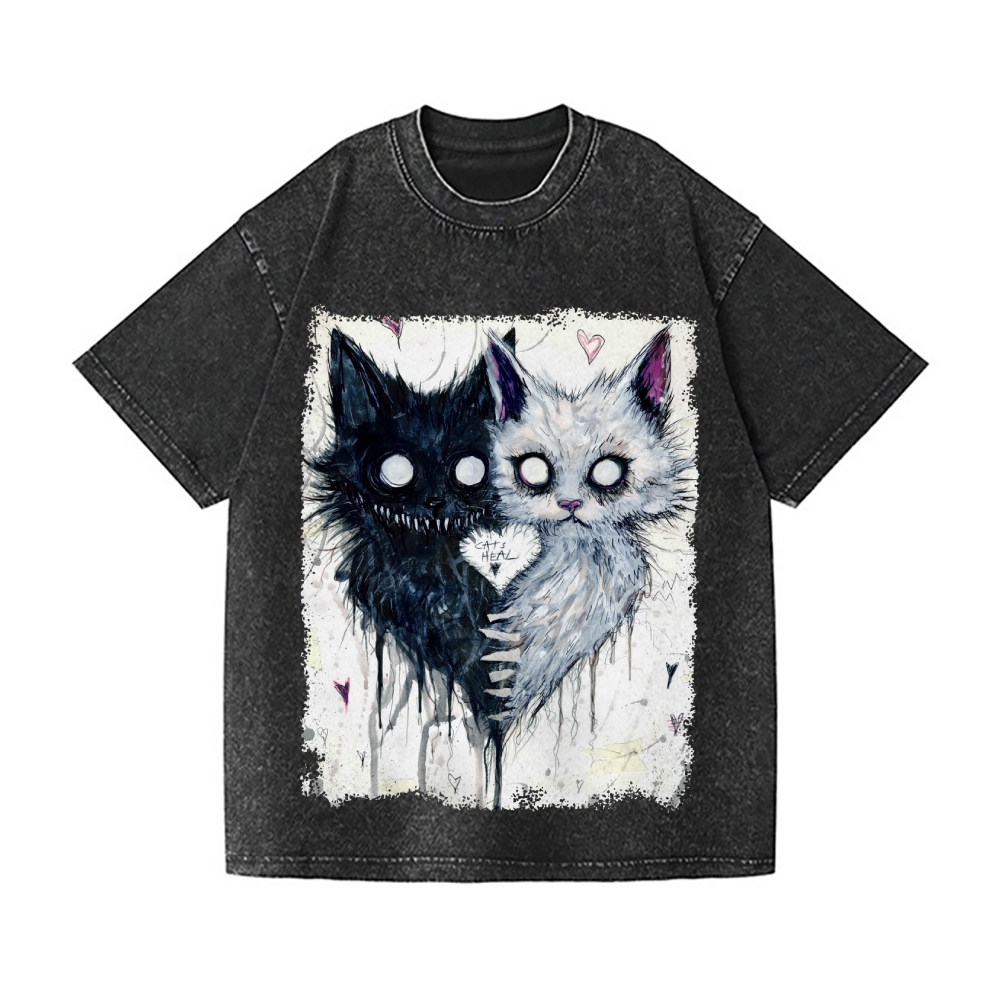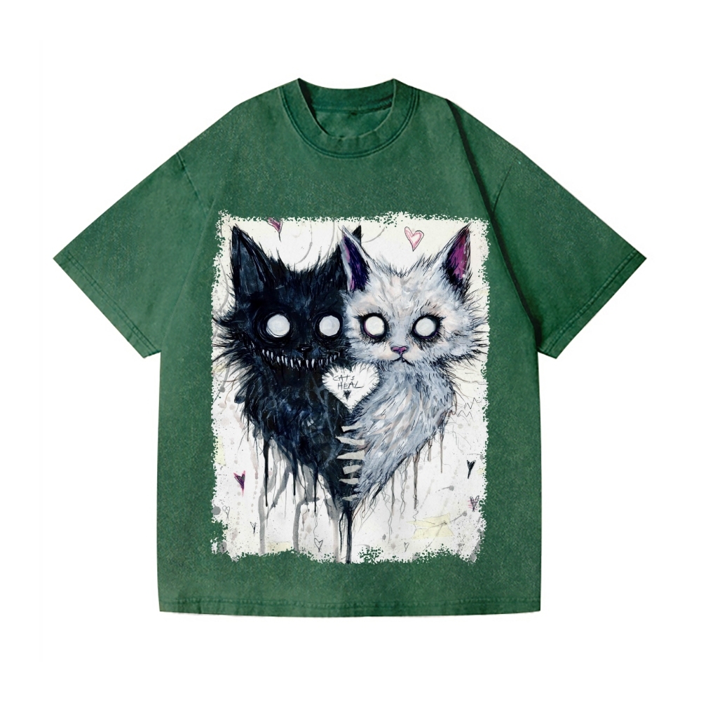 Dark Cat Vintage Wash Japanese Design T-Shirt