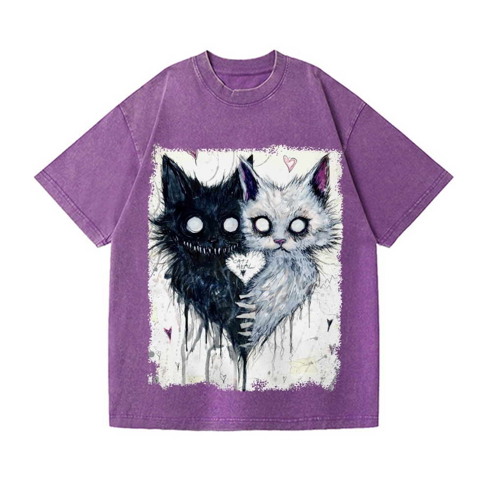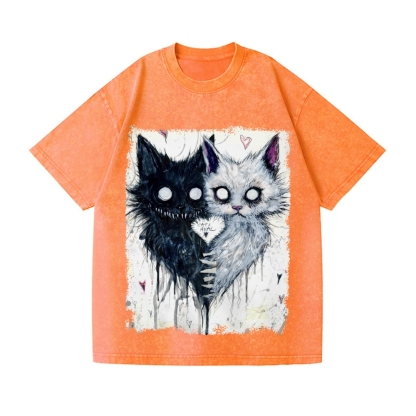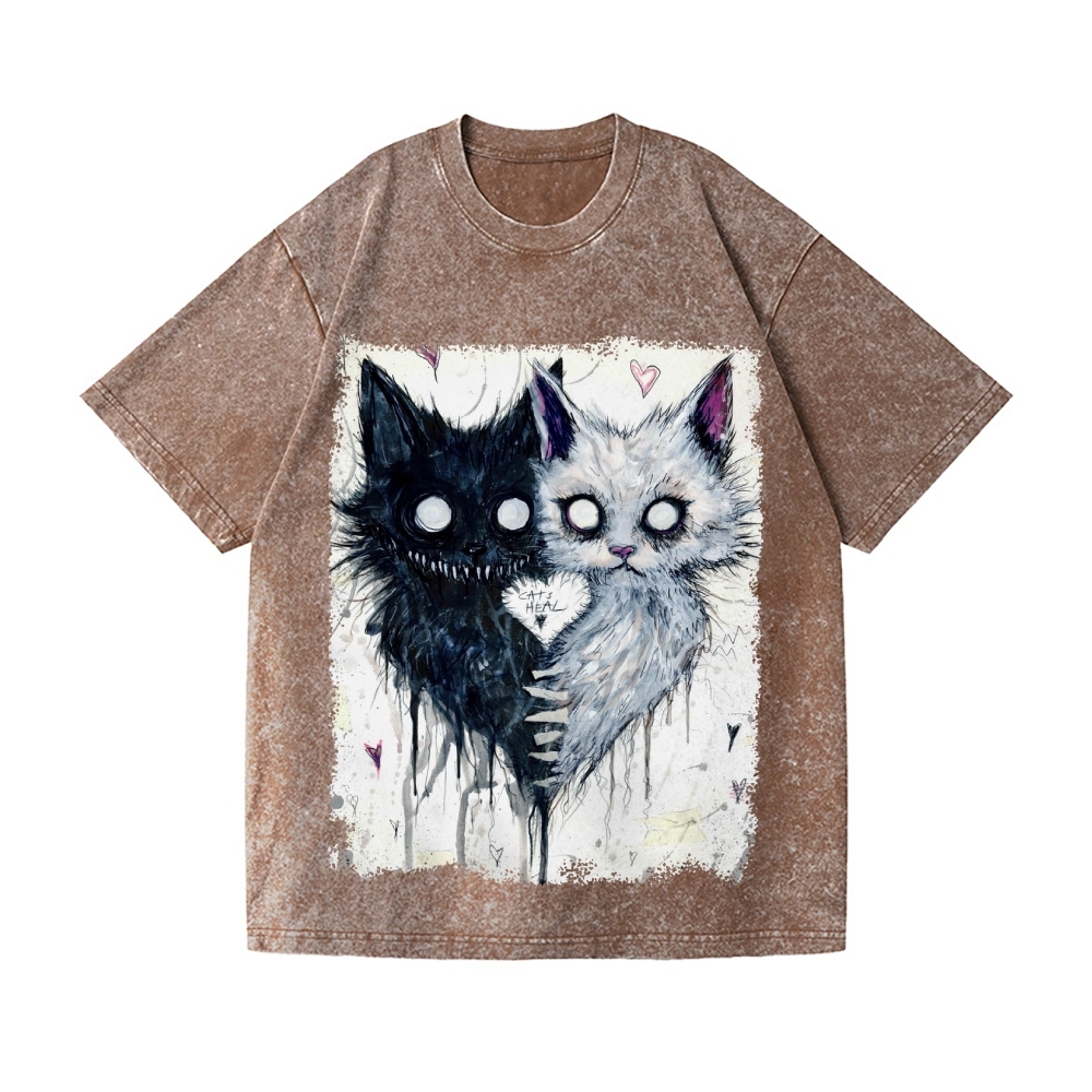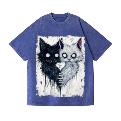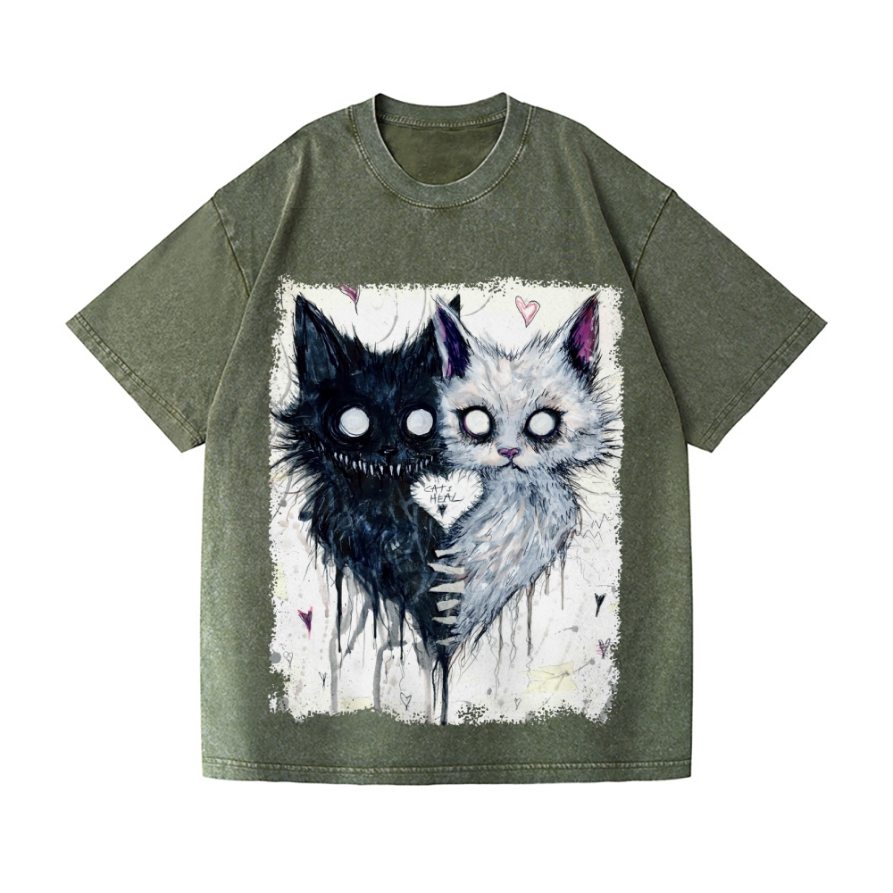 Dark Cat Vintage Wash Japanese Design T-Shirt