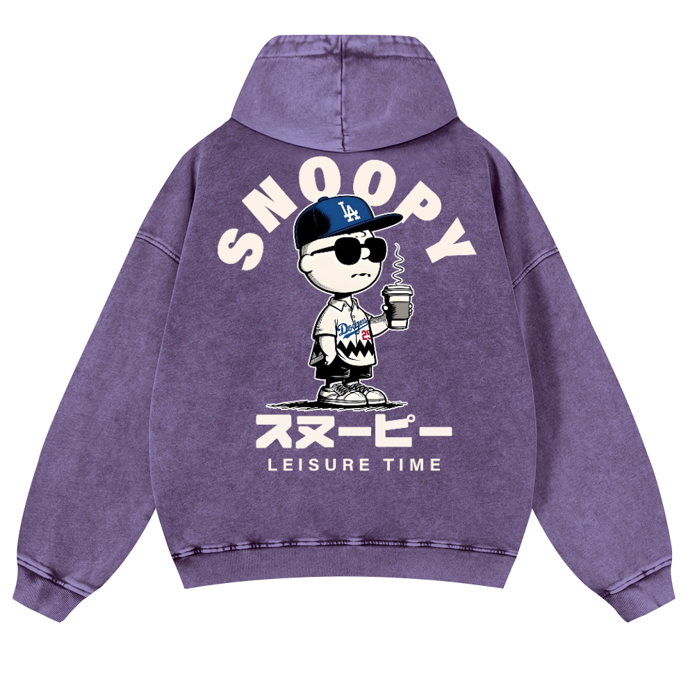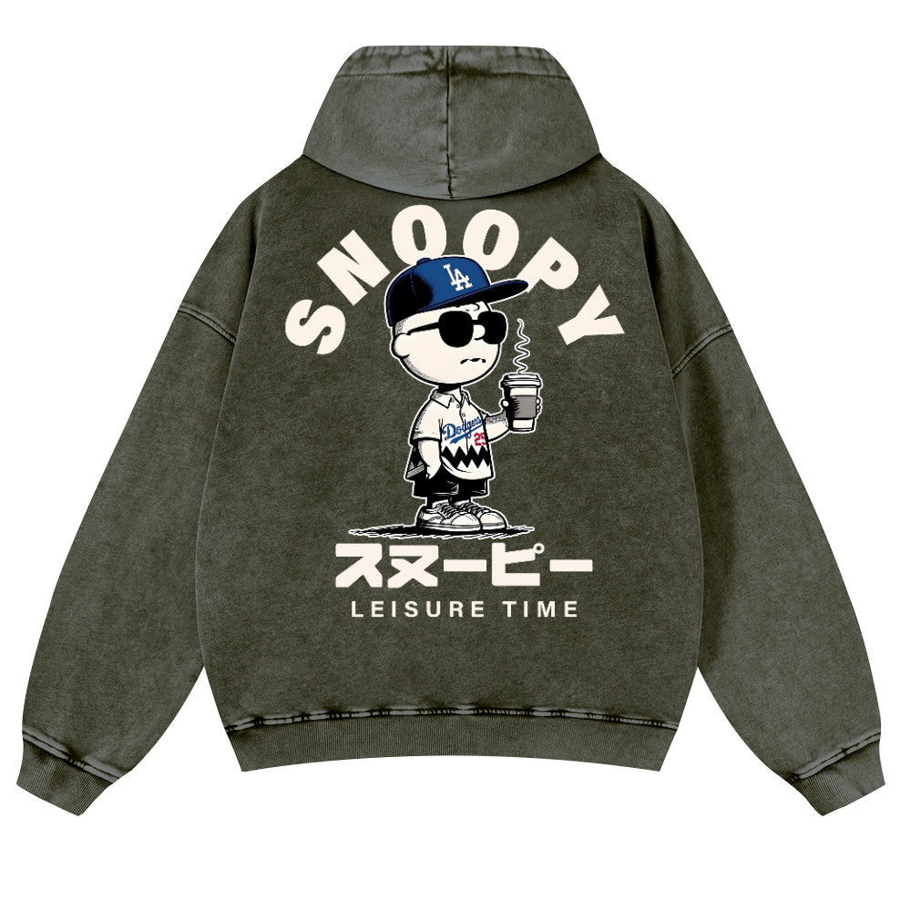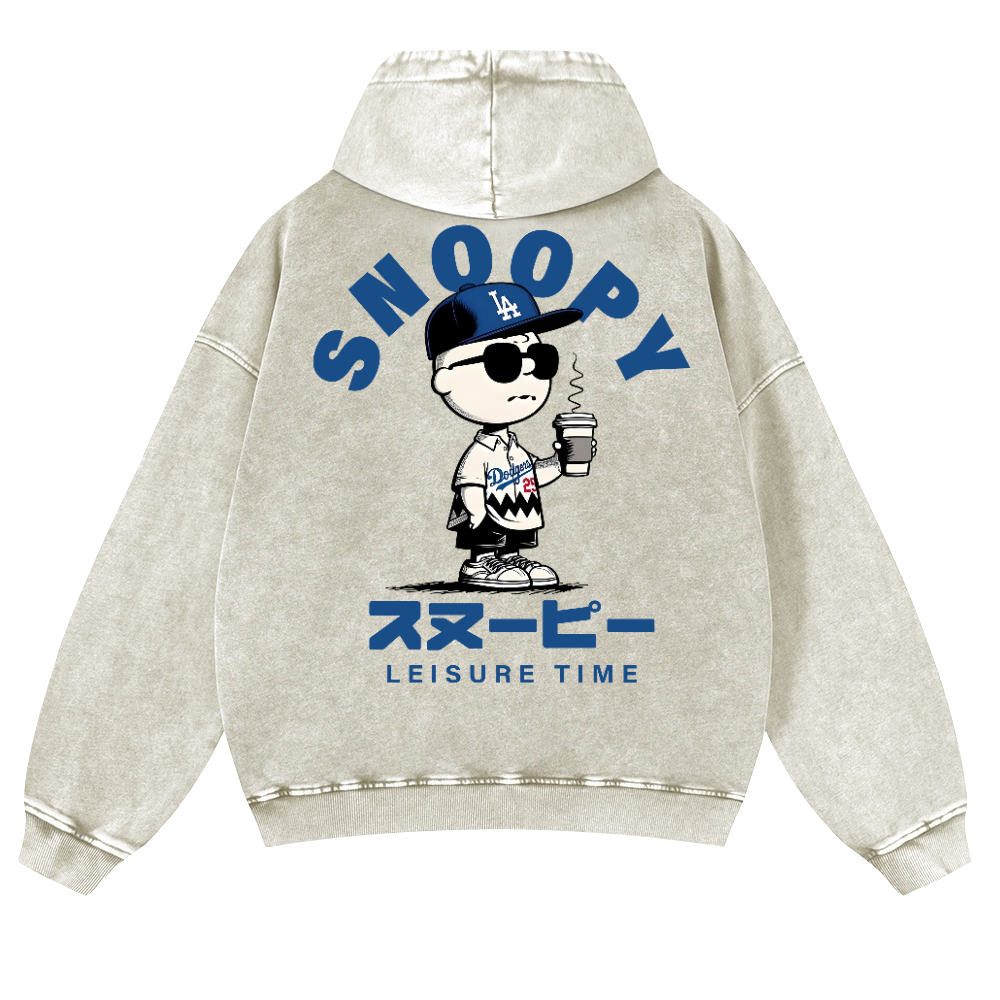 Dodgers Peanuts Baseball Vintage Washed Cotton Back Art Hoodie