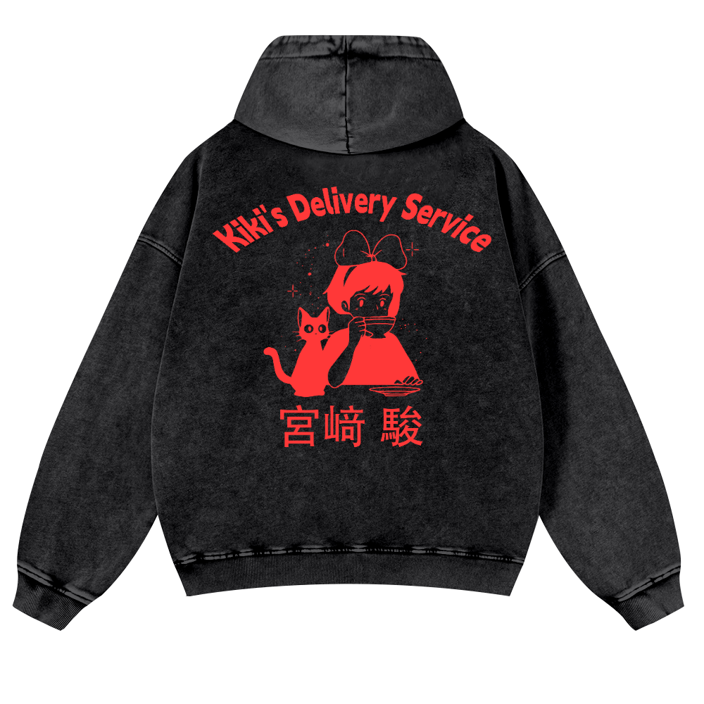 Ghibli Kiki's Delivery Service Totoro Anime Vintage Washed Cotton Back Art Hoodie
