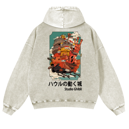 Ghibli Miyazaki Hayao Howl’s Moving Castle Anime Vintage Washed Cotton Back Art Hoodie