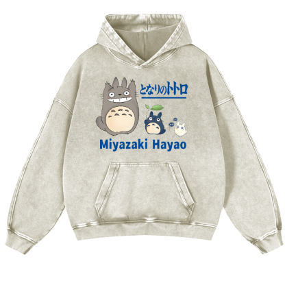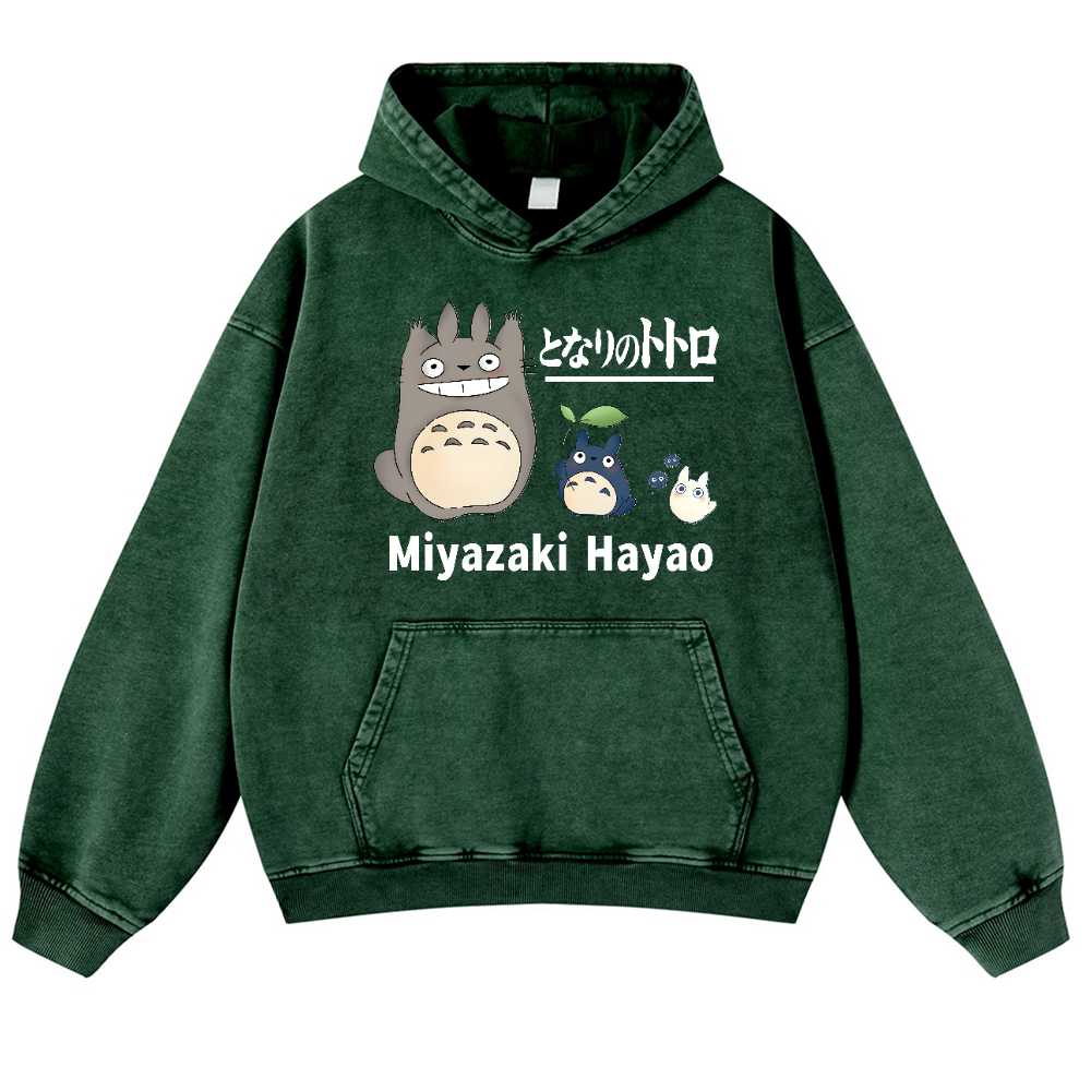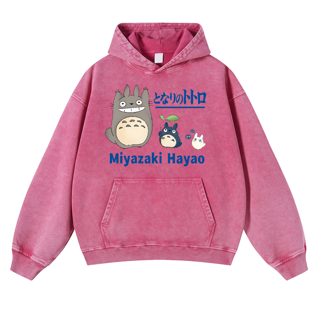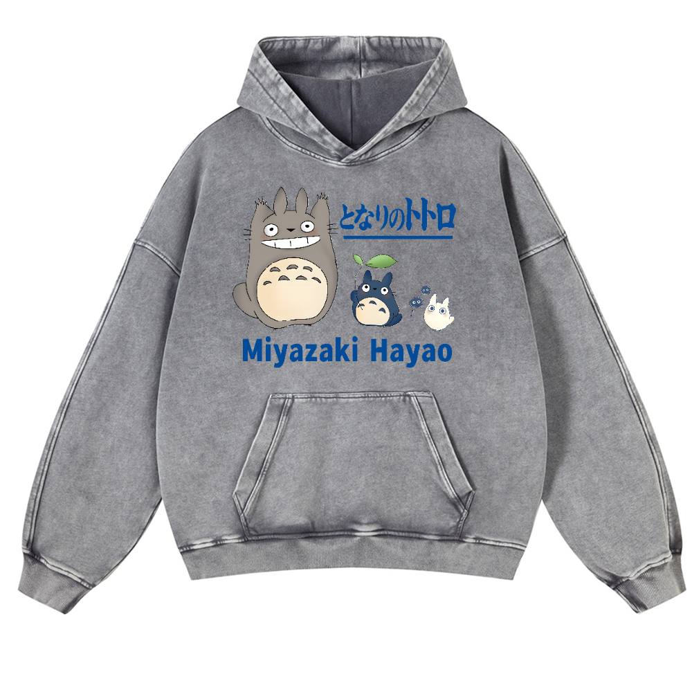 Ghibli Miyazaki Hayao Totoro Anime Vintage Washed Thick Cotton Hoodie