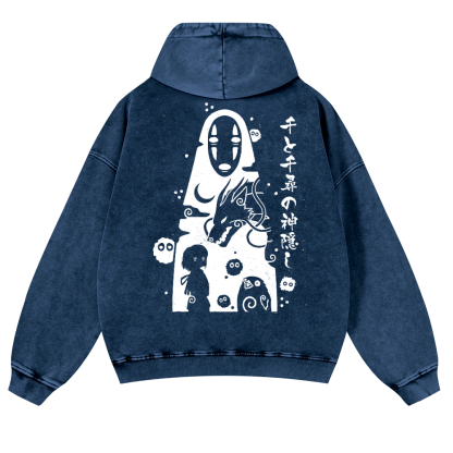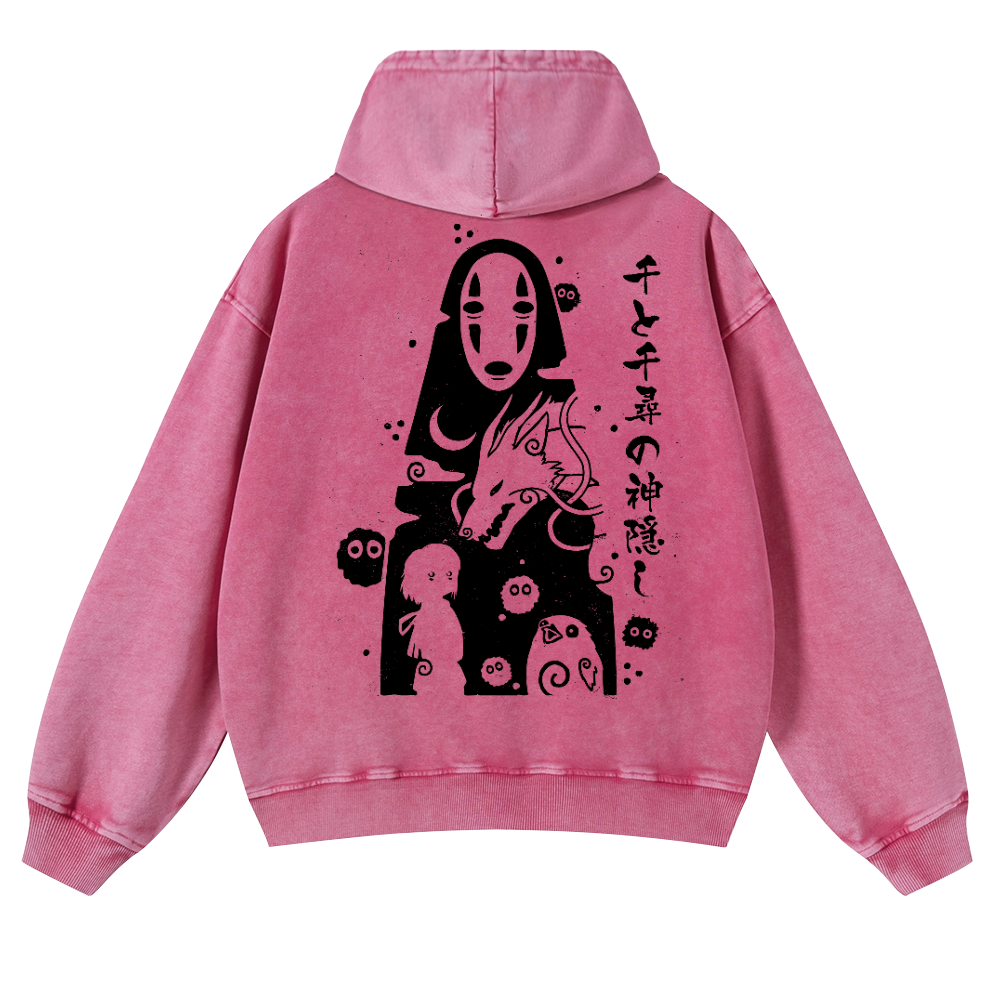 Ghibli No Face Kaonashi Vintage Washed Cotton Back Art Hoodie