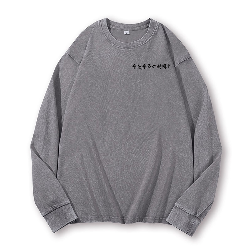 Ghibli No Face Kaonashi Vintage Washed Cotton Back Art Long-sleeve T-shirt