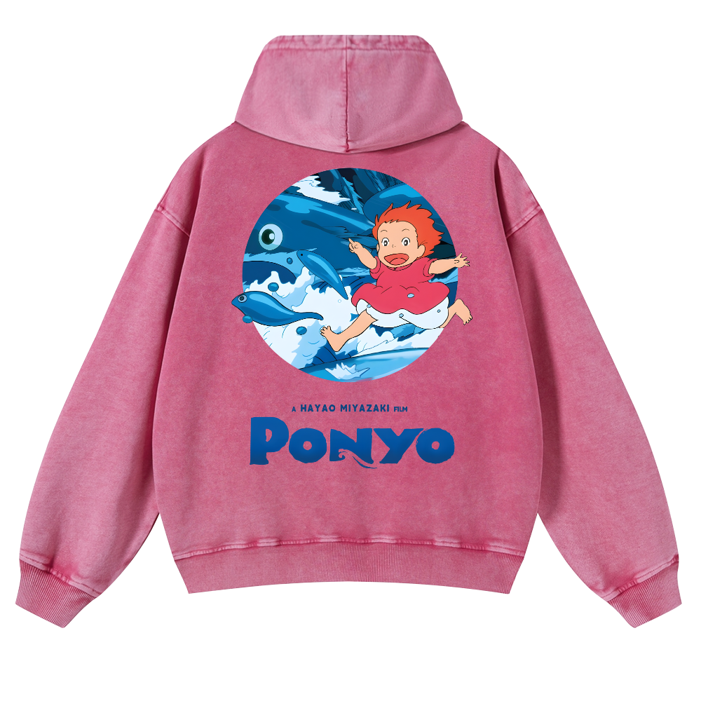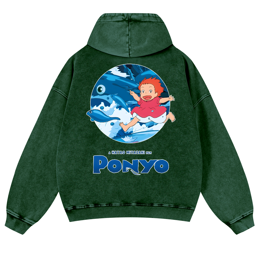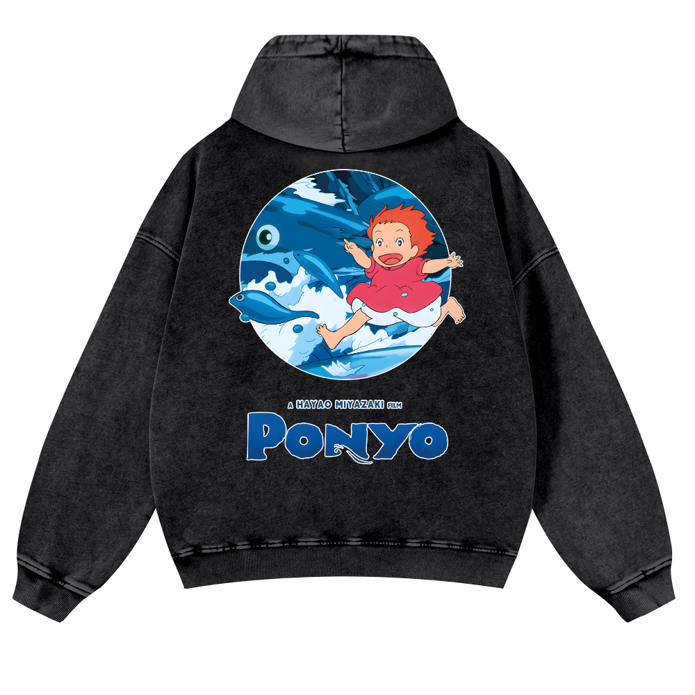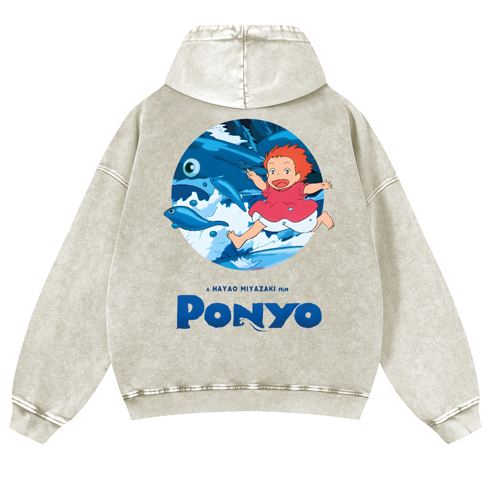 Ghibli Ponyo Anime Vintage Washed Cotton Back Art Hoodie