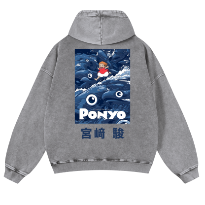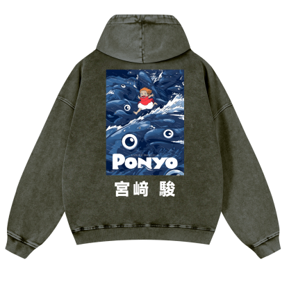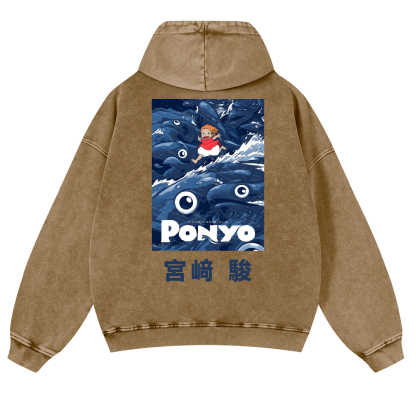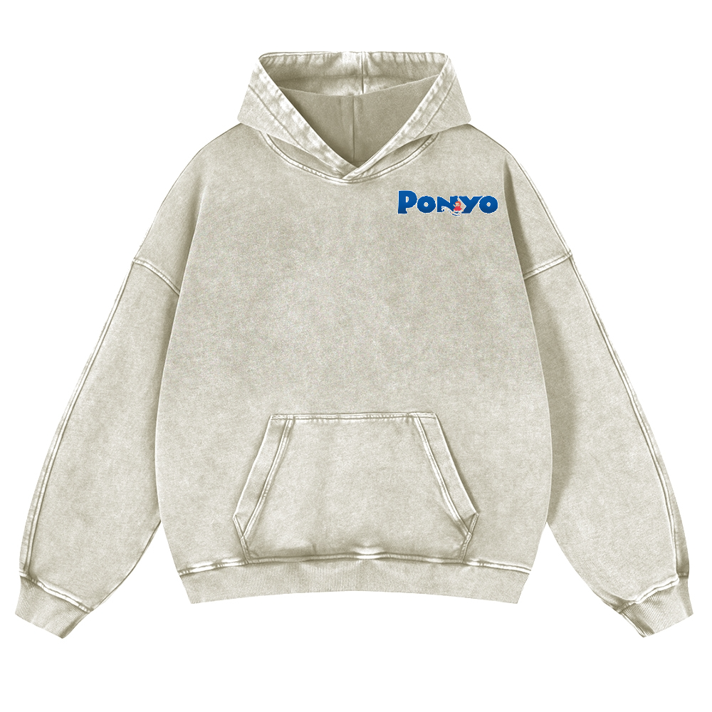 Ghibli Ponyo Anime Vintage Washed Cotton Back Art Hoodie
