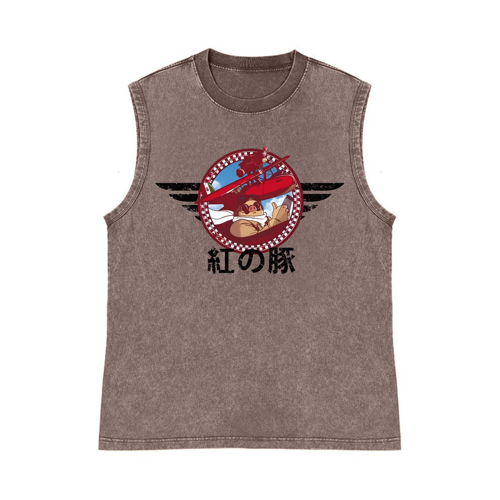 Ghibli Porco Rosso Pure Cotton Wash-Dyed Sleeveless Tank Top