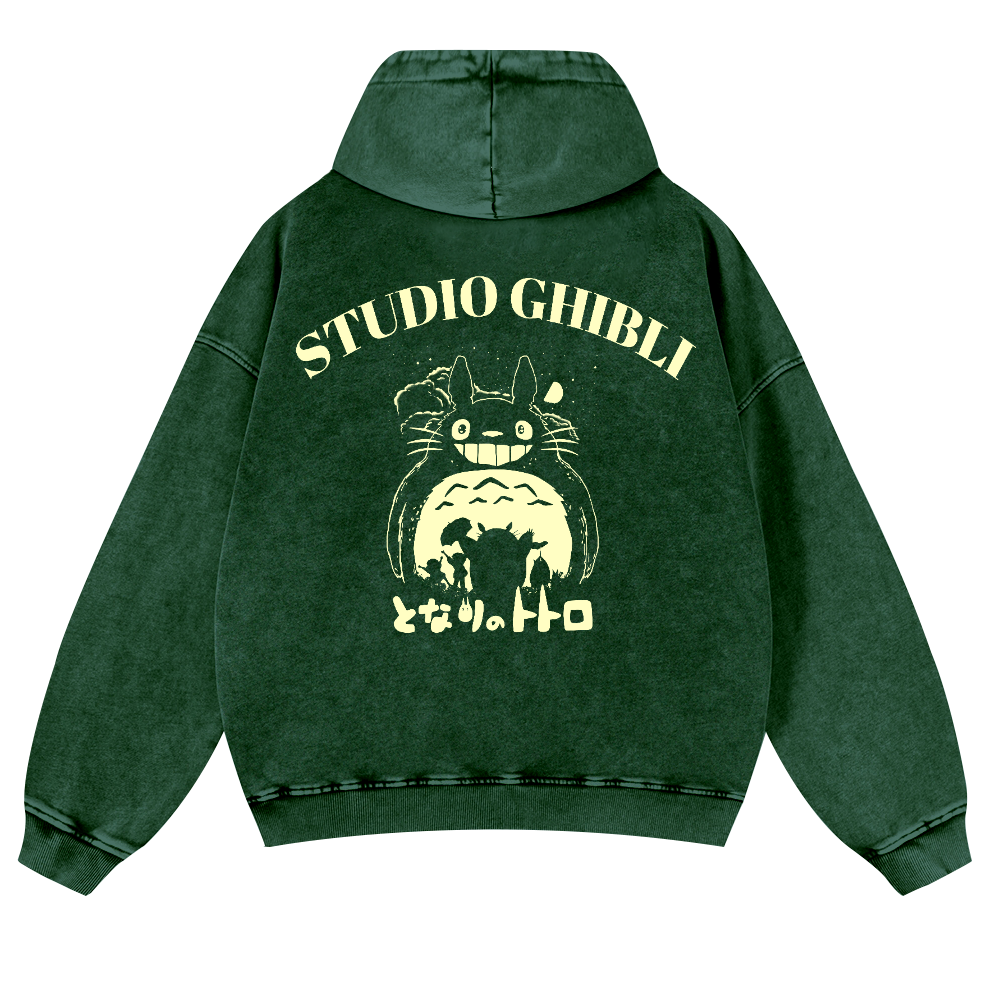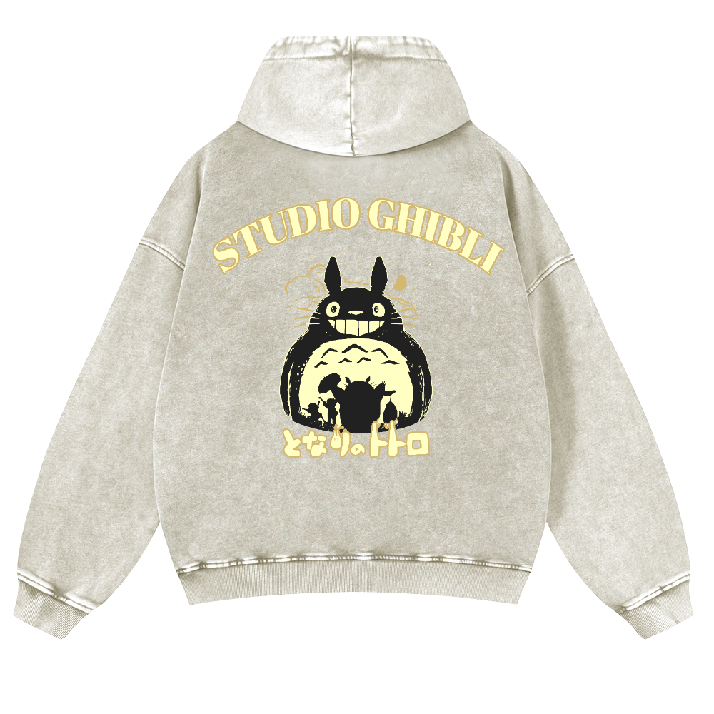 Ghibli Totoro Anime Vintage Washed Cotton Back Art Hoodie