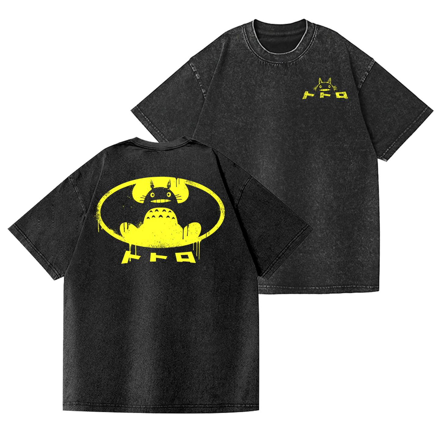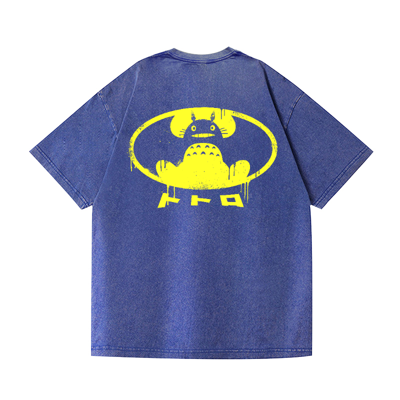 Ghibli Totoro Batman Vintage Wash Japanese Design Back Art T-Shirt