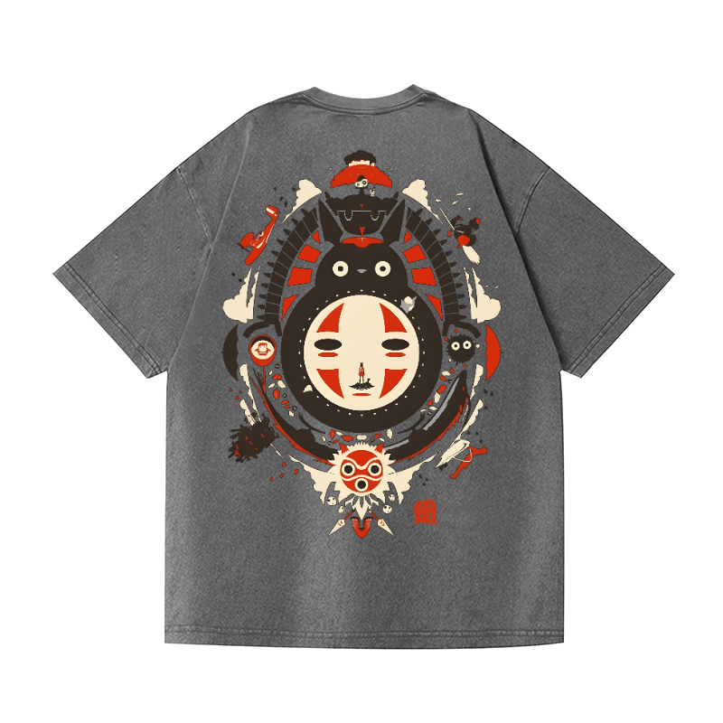 Ghibli Totoro No Face Kaonashi Vintage Wash Japanese Design Back Art T-Shirt