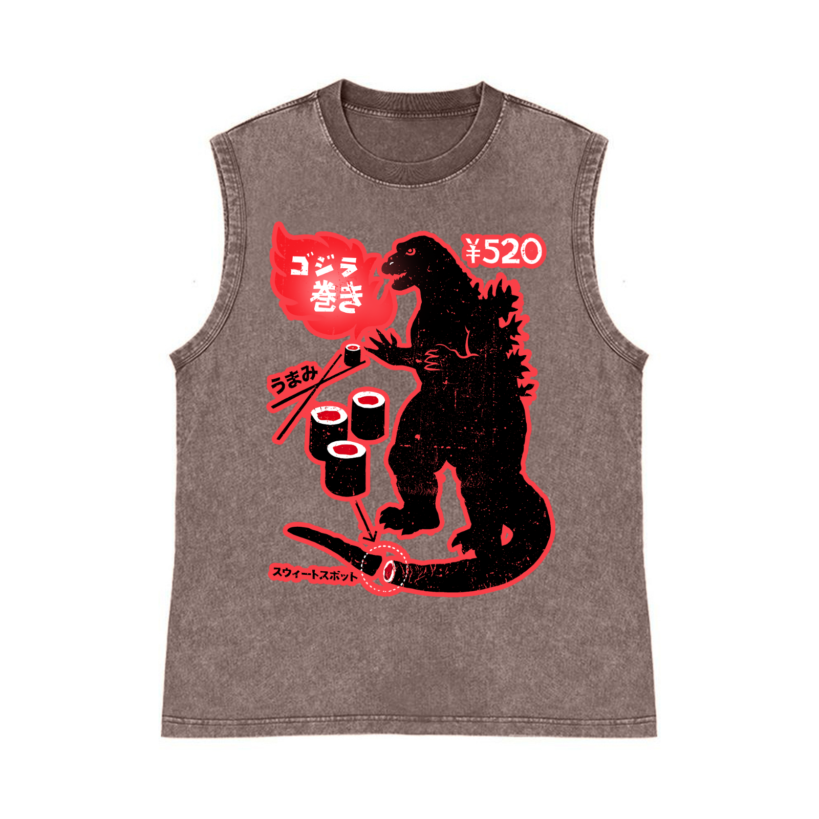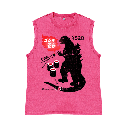 Kaiju Sushi Pure Cotton Wash-Dyed Sleeveless Tank Top