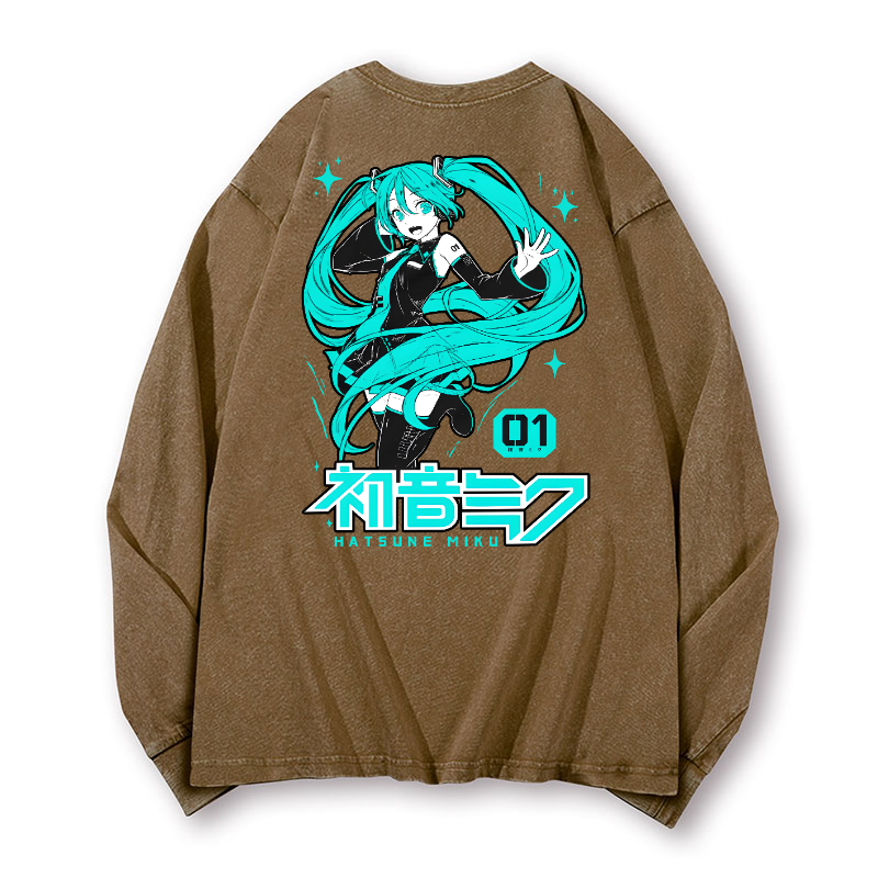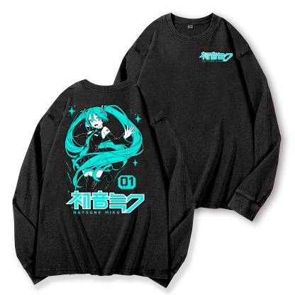 Hatsune Miku Vintage Washed Cotton Back Art Long-sleeve T-shirt