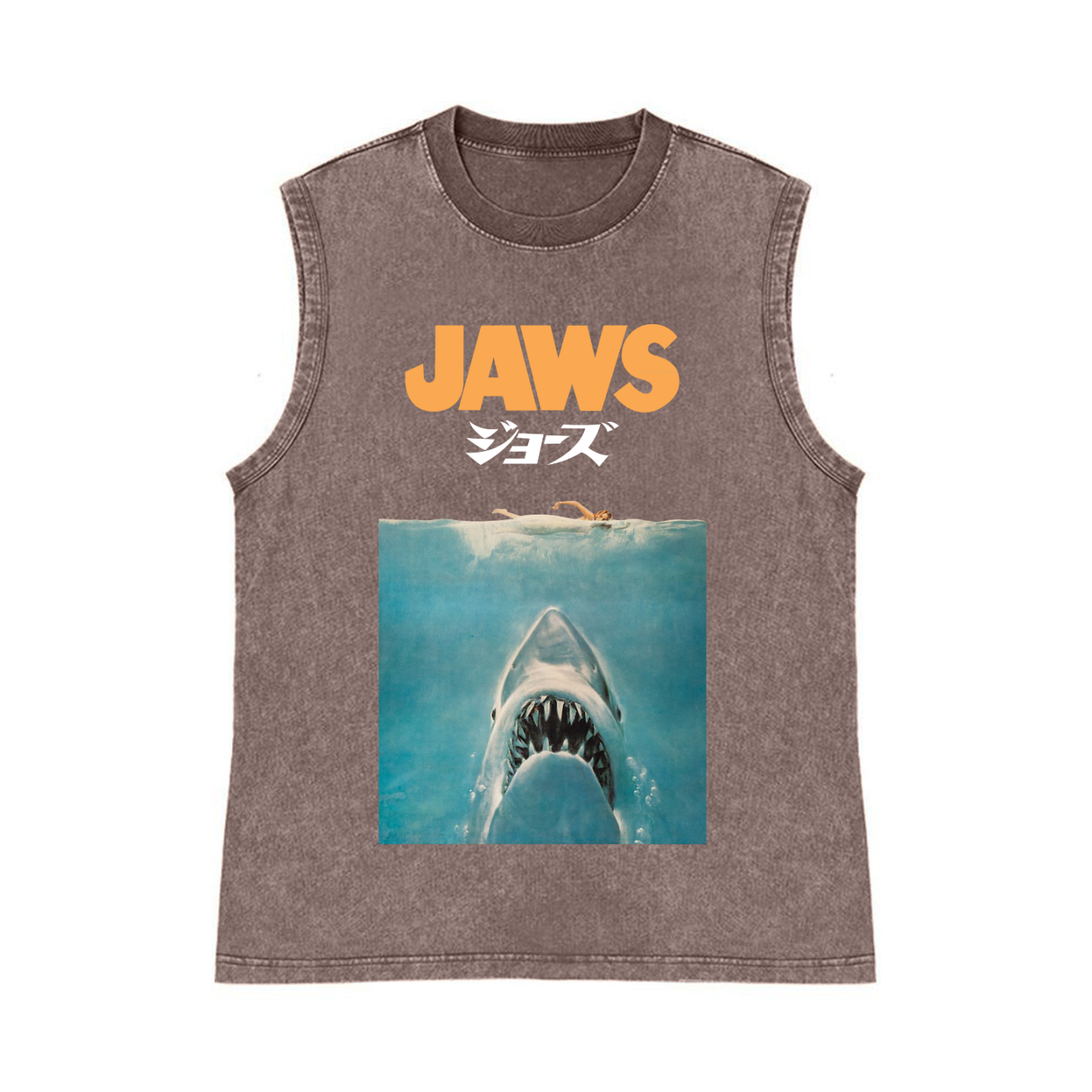 Jaws Shark Pure Cotton Wash-Dyed Sleeveless Tank Top