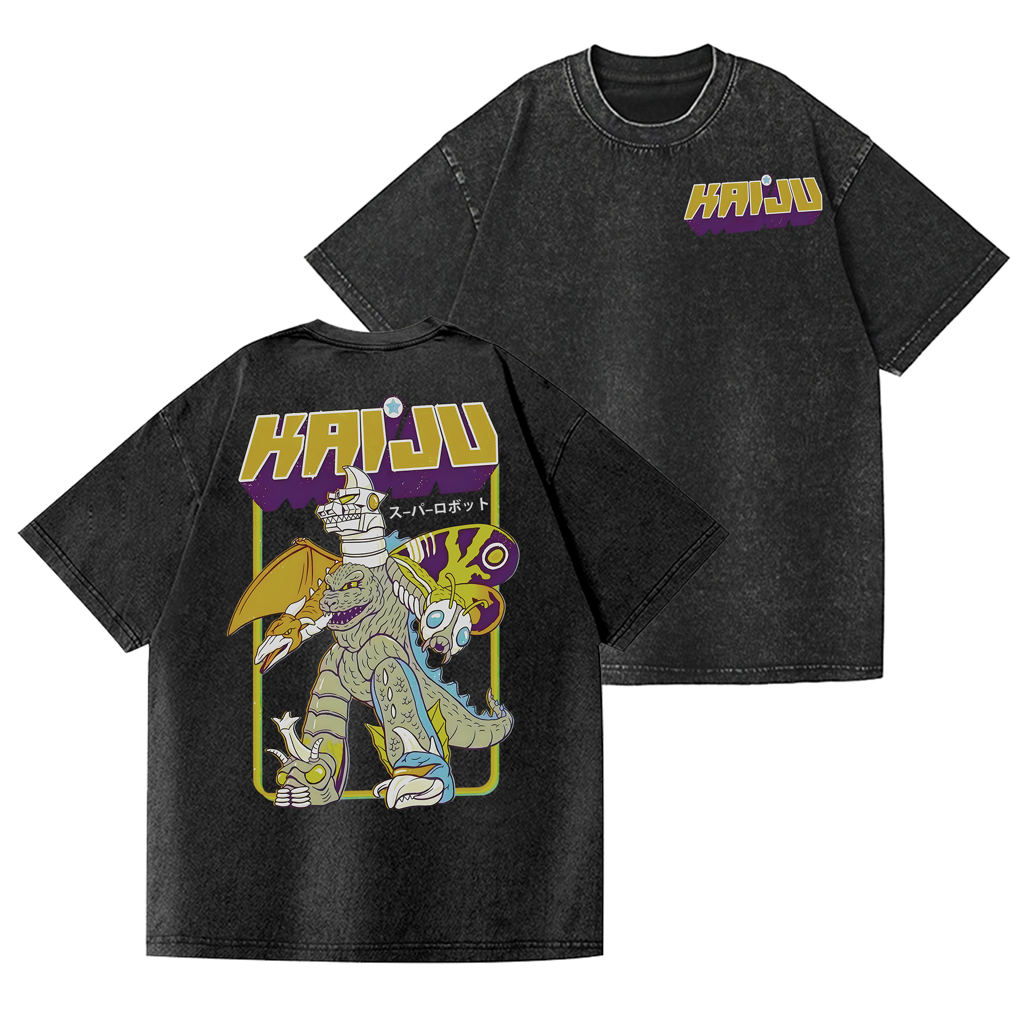 Kaiju Monster Vintage Wash Japanese Design Back Art T-Shirt