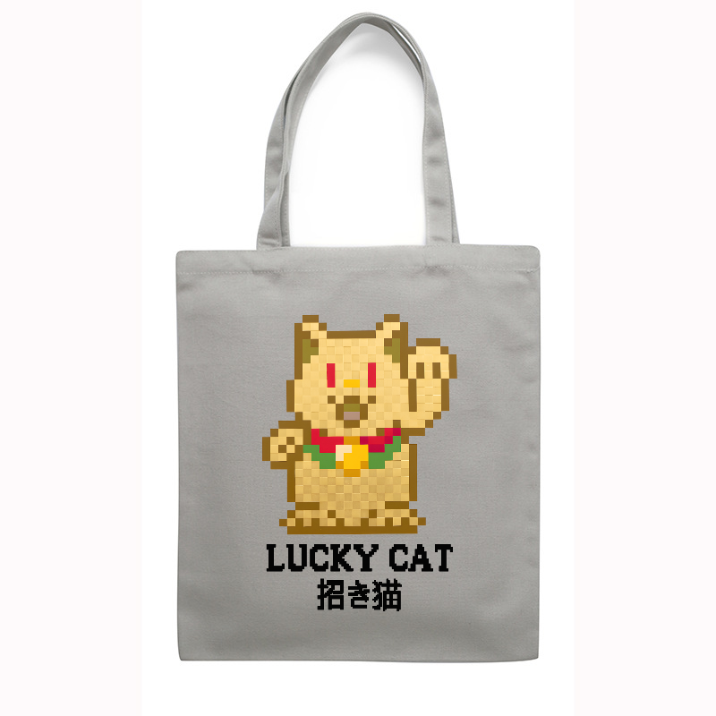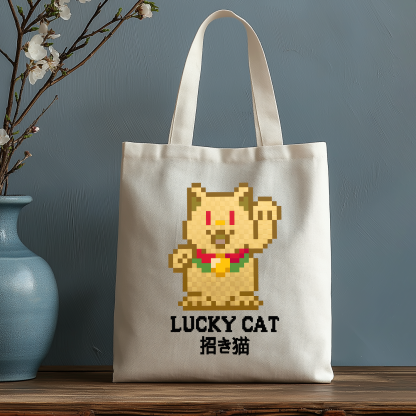 TM Mosaic Lucky Cat Japanese Style Canvas Tote Bag