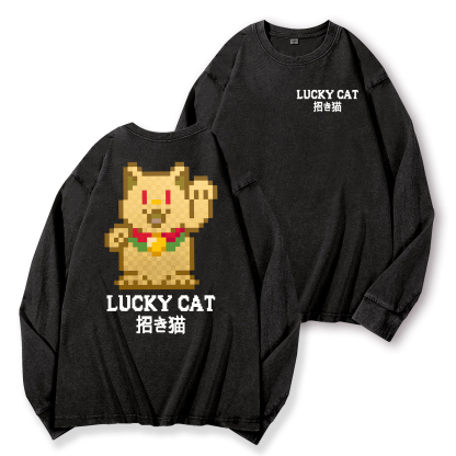 TM Mosaic Lucky Cat Vintage Washed Cotton Back Art Long-sleeve T-shirt