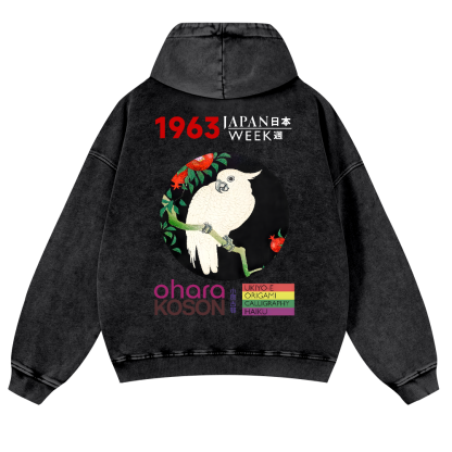 Ohara Koson Vintage Washed Cotton Back Art Hoodie