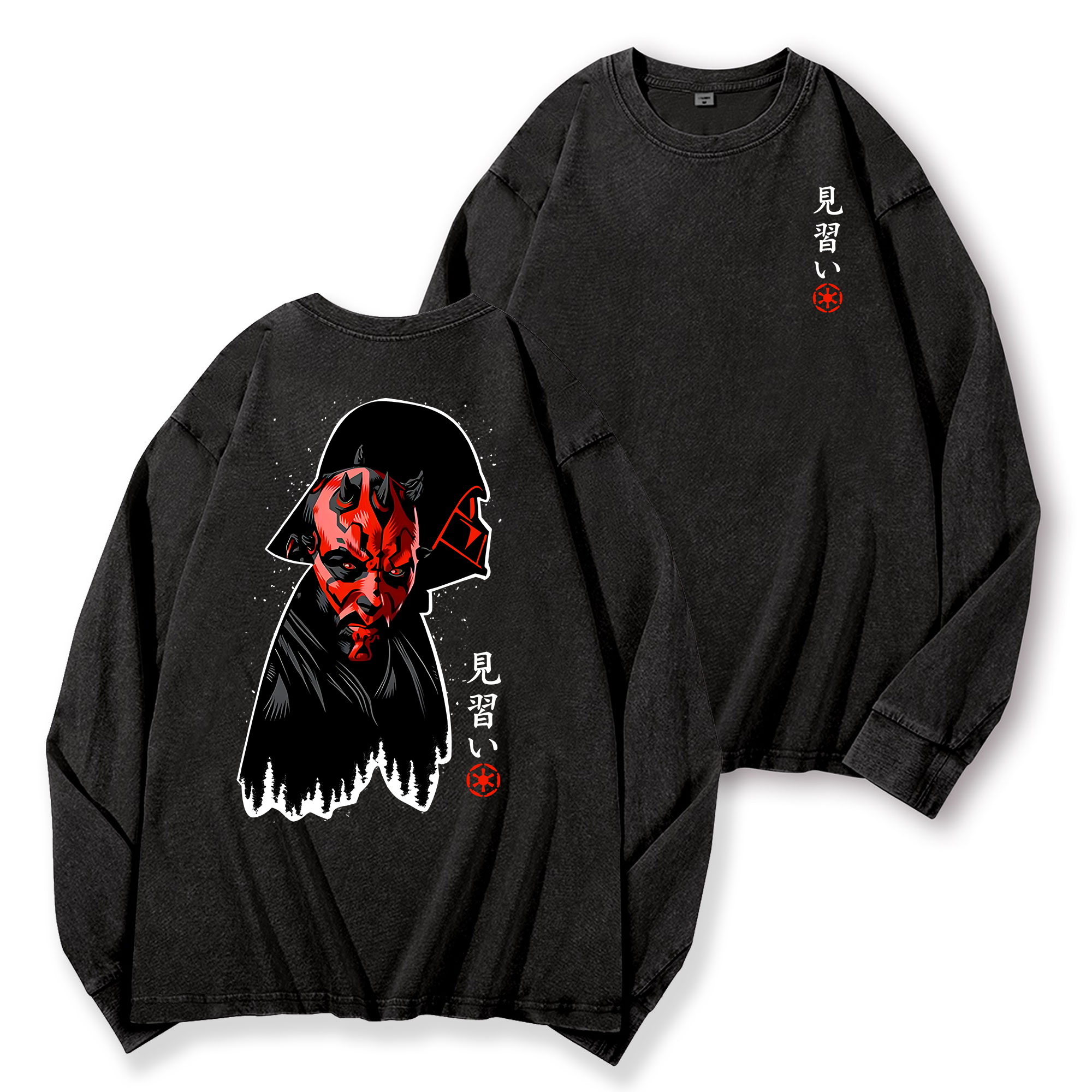 Star Wars Darth Maul Vintage Washed Cotton Back Art Long-sleeve T-shirt