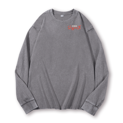 Ukiyoe Jaws Shark Vintage Washed Cotton Back Art Long-sleeve T-shirt