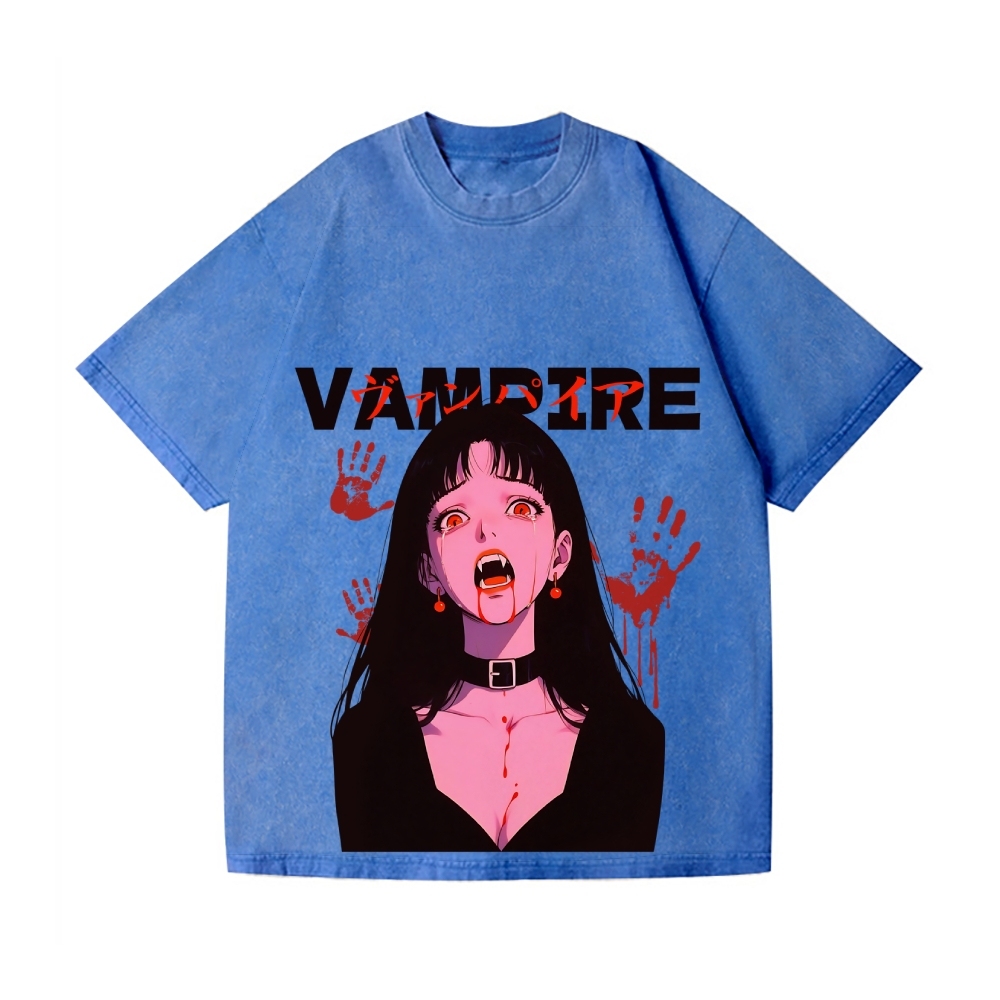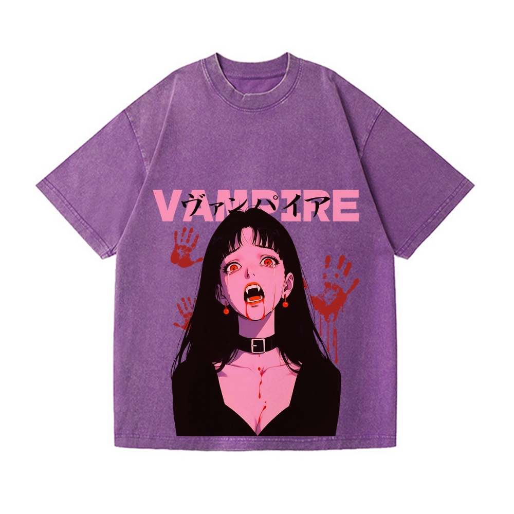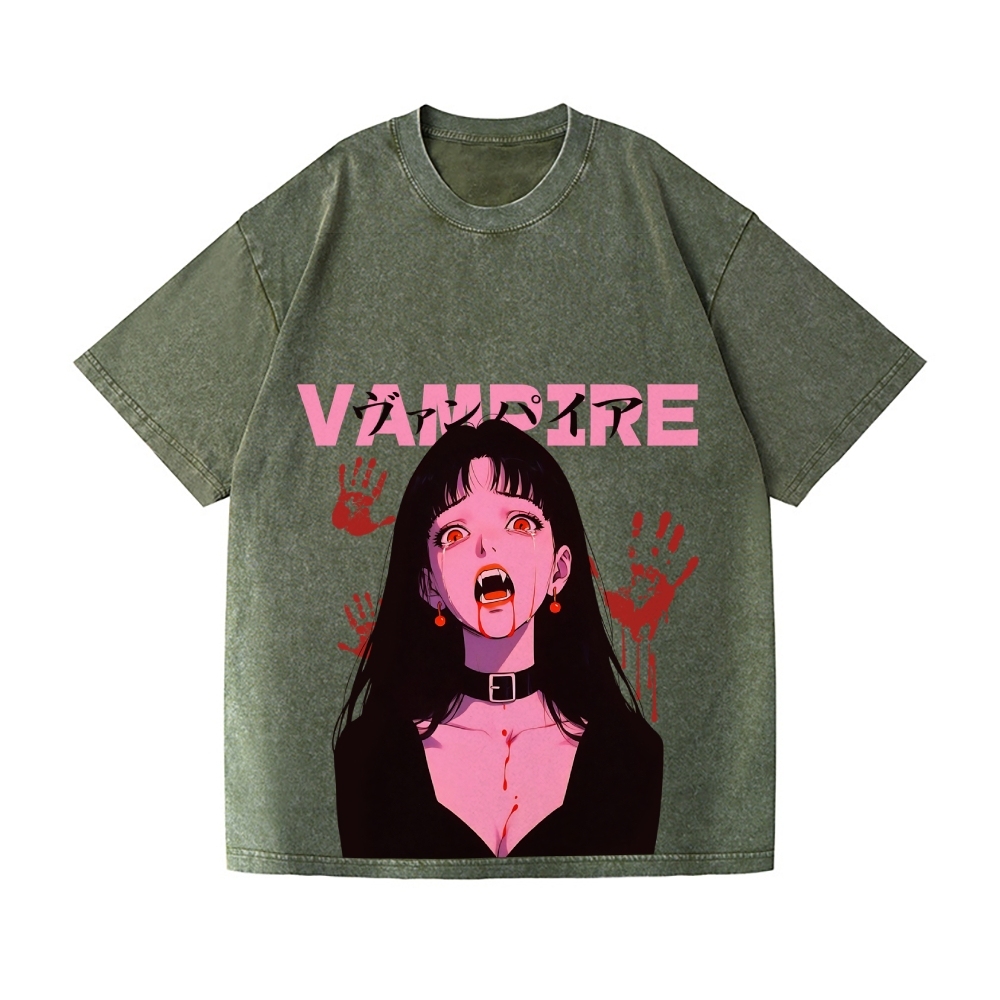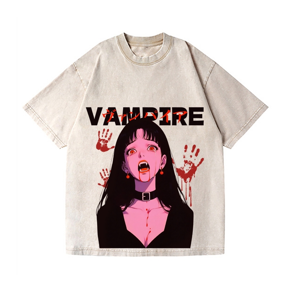 Vampire Girl Art Vintage Wash Japanese Design T-Shirt