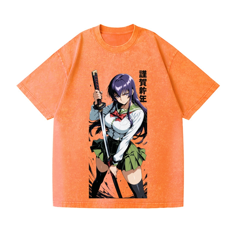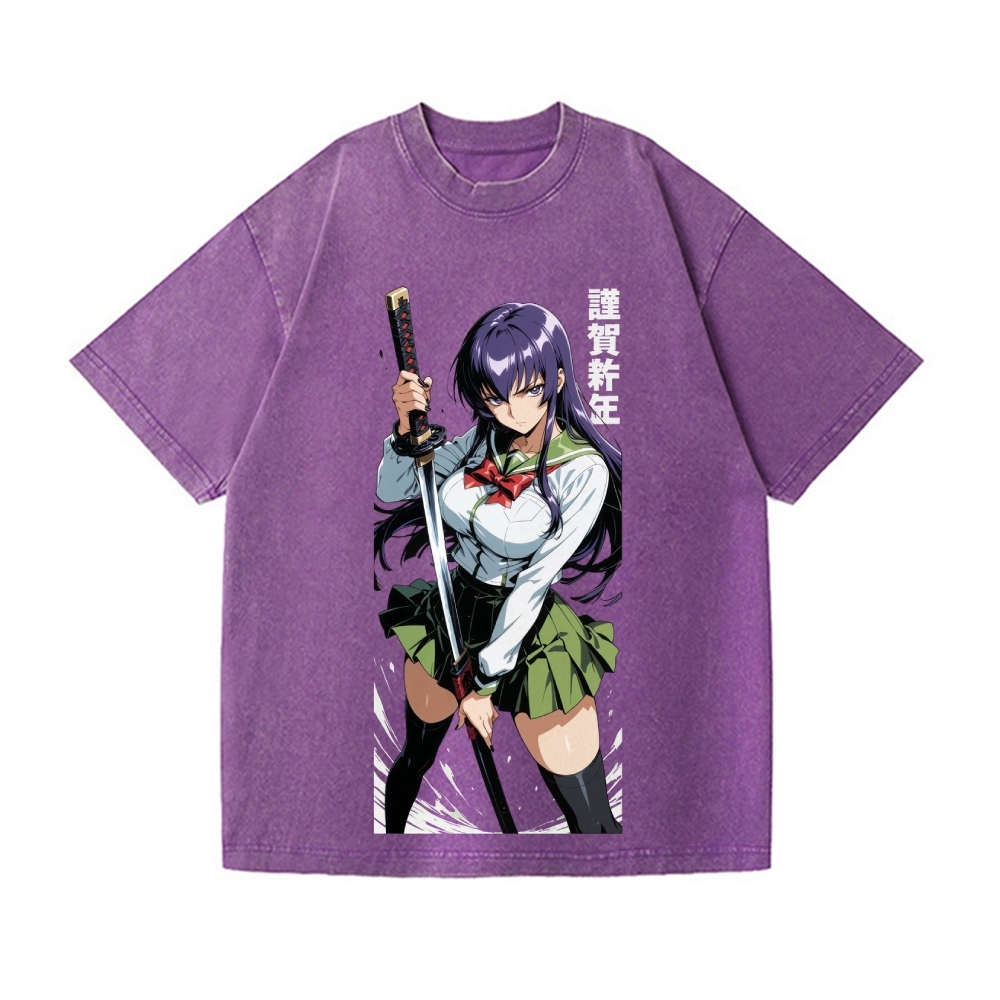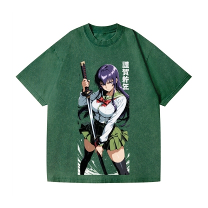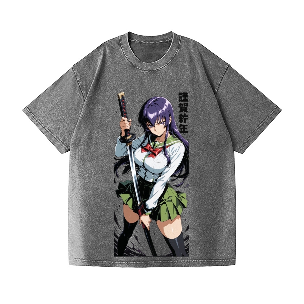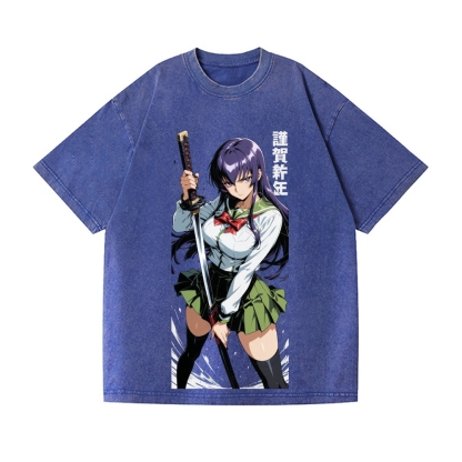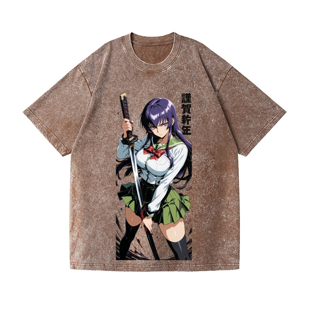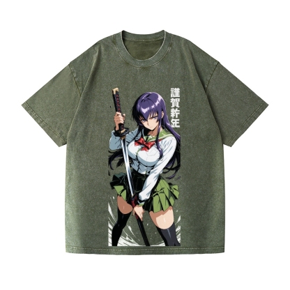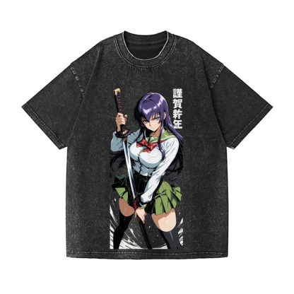 Saeko Busujima Vintage Wash Japanese Design T-Shirt