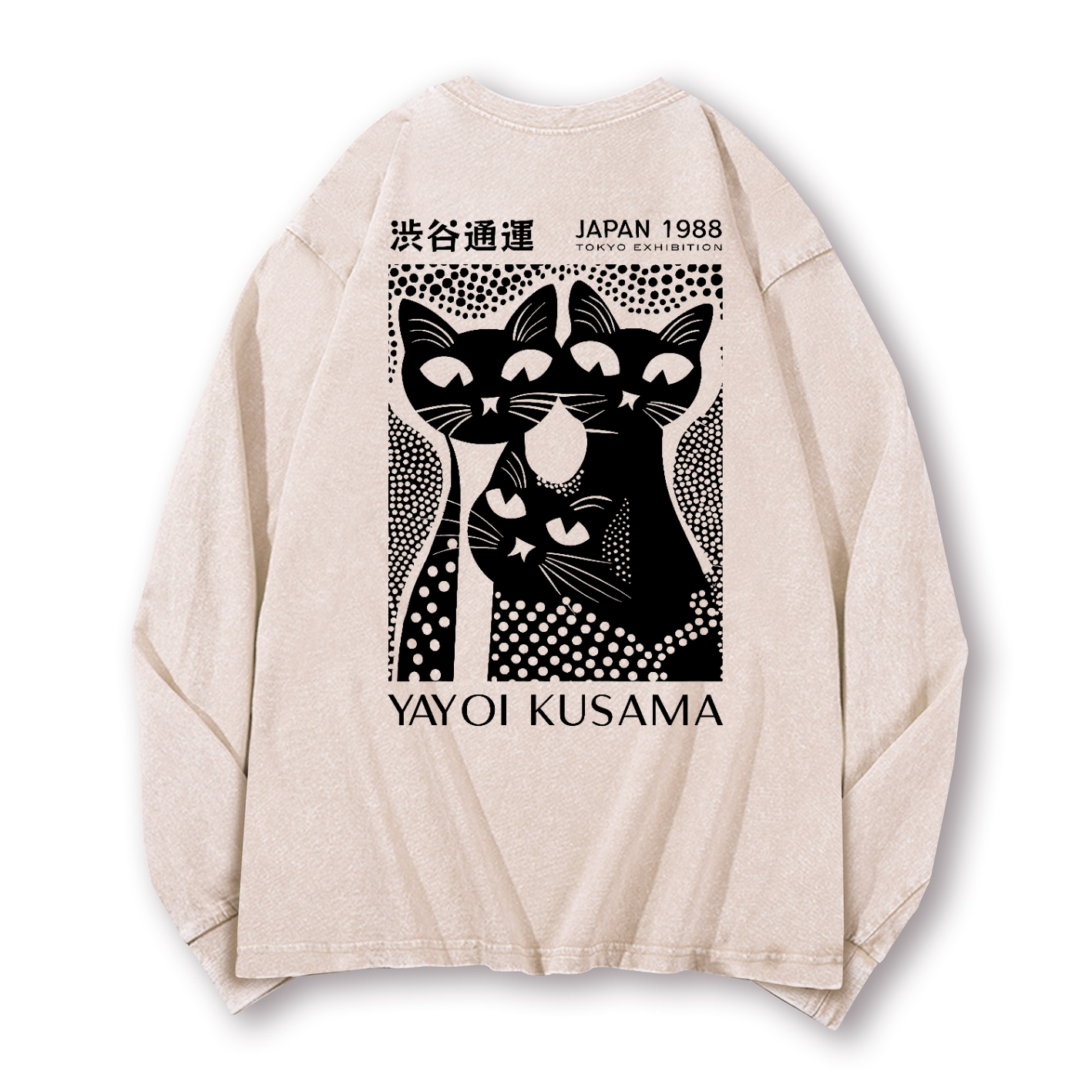 Yayoi Kusama Black Cat Vintage Washed Cotton Back Art Long-sleeve T-shirt