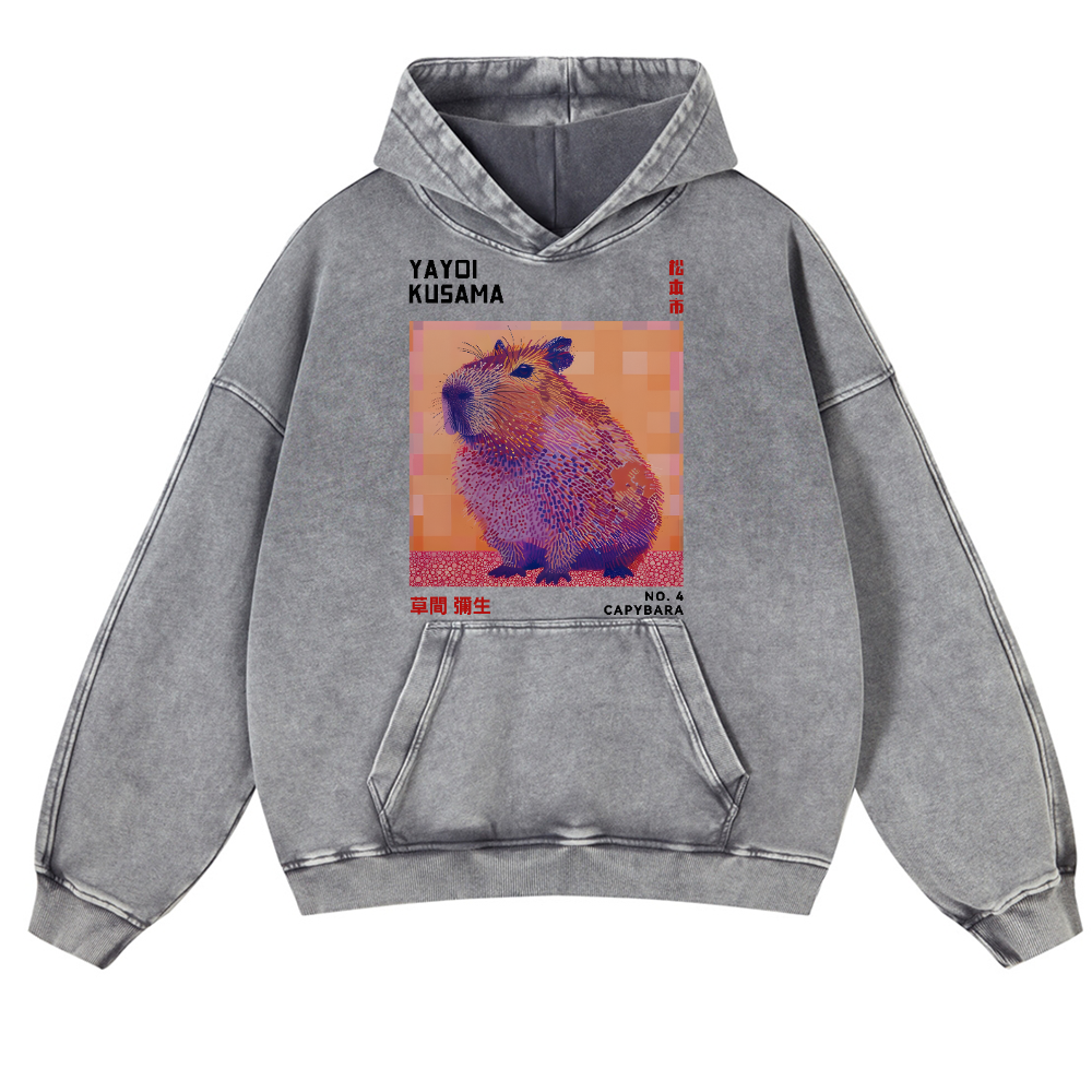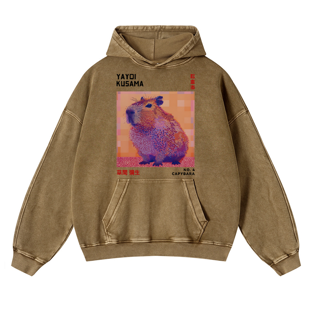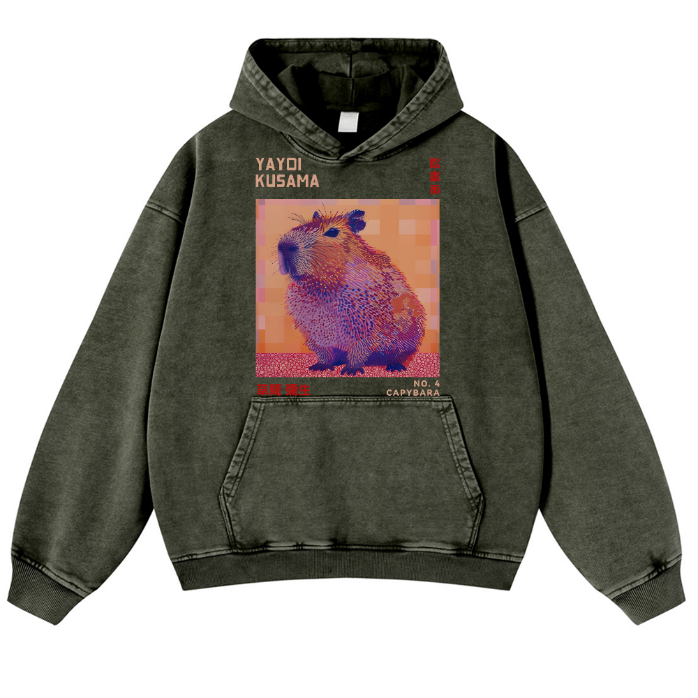 Yayoi Kusama Capybara Vintage Washed Thick Cotton Hoodie