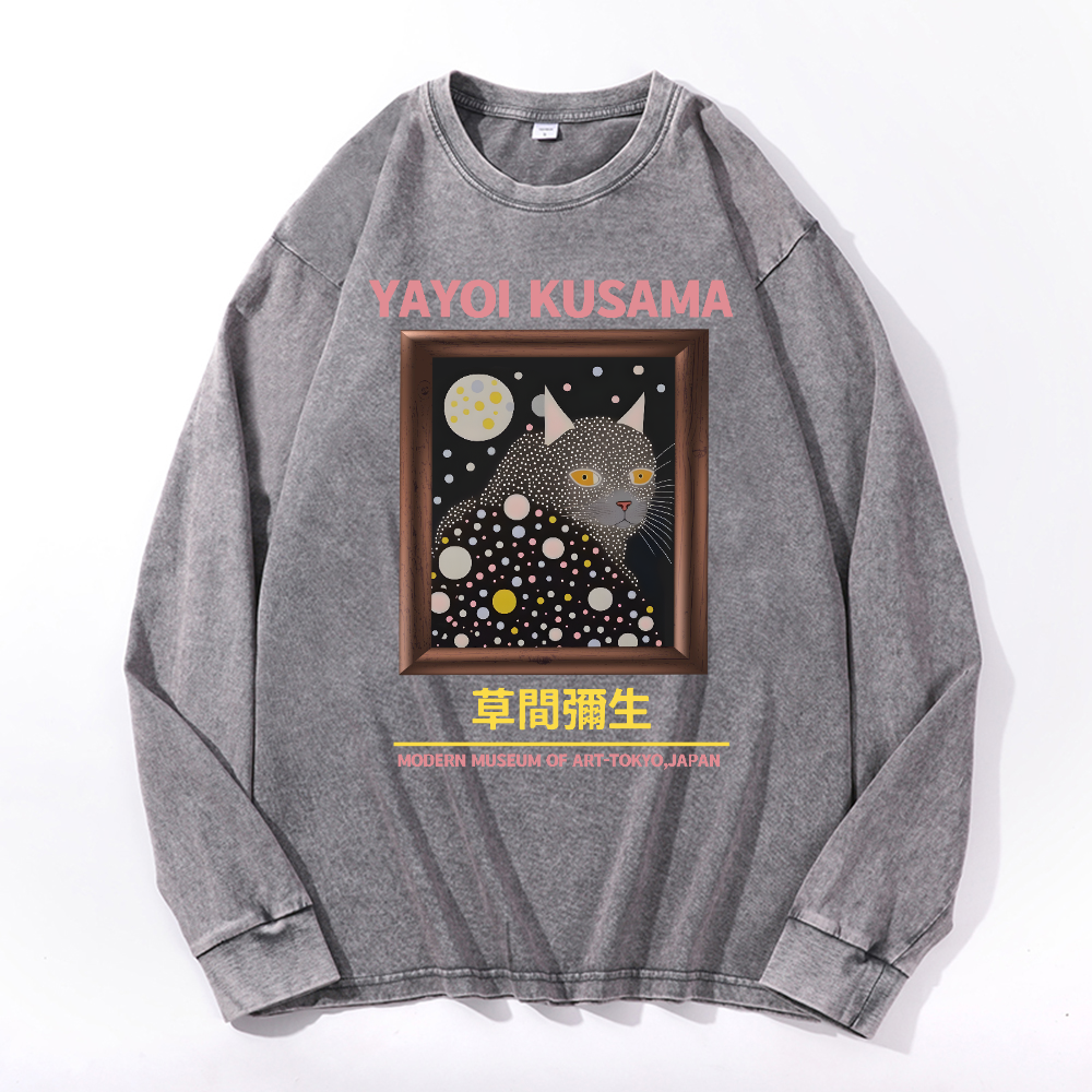 Yayoi Kusama Cat Vintage Cotton Wash Crewneck Sweatshirt