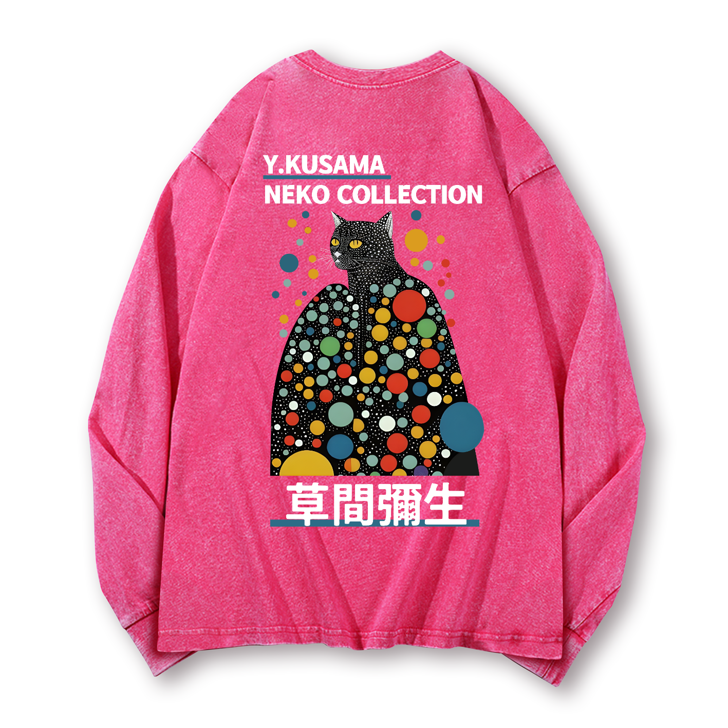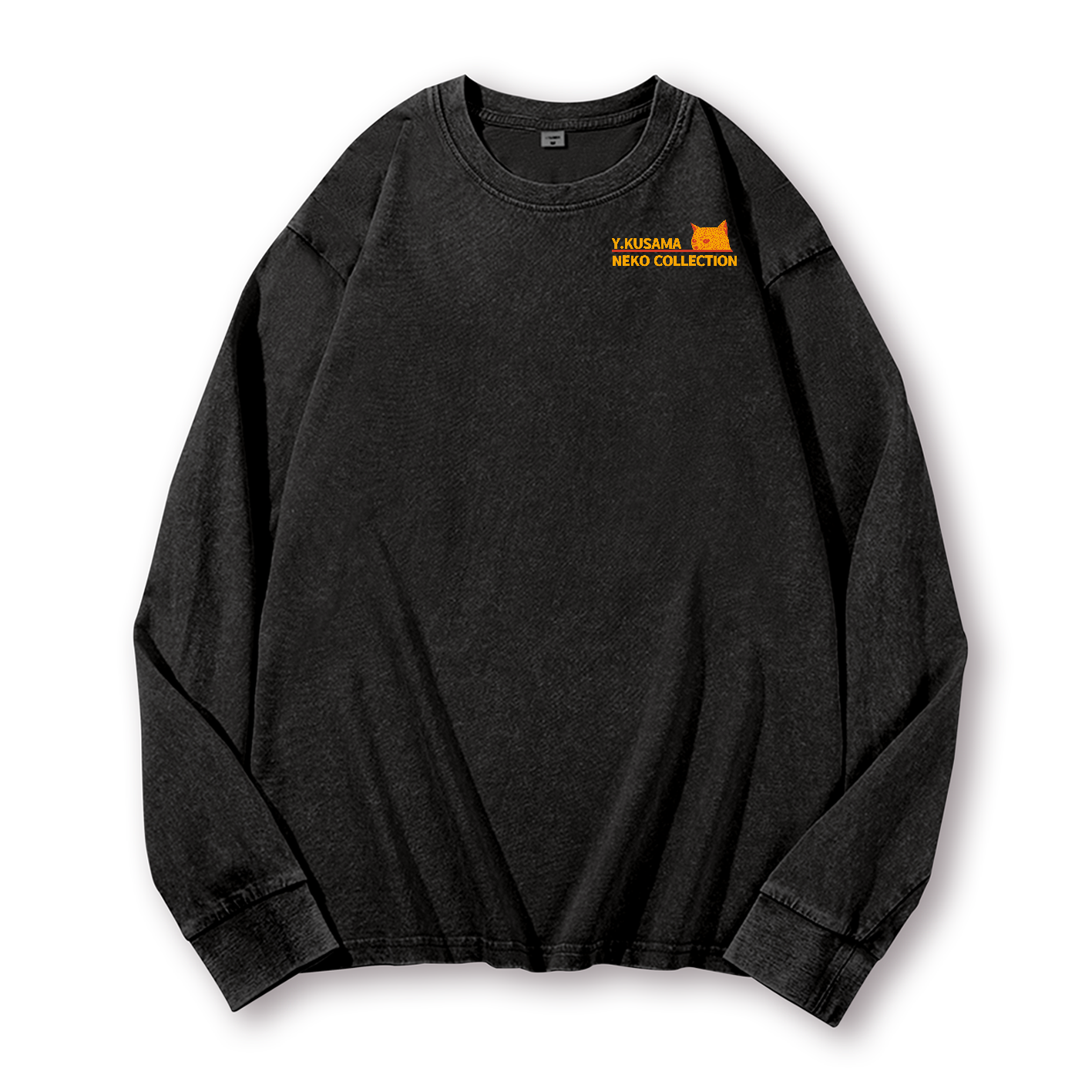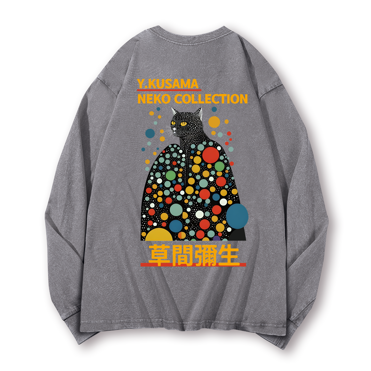 Yayoi Kusama Cat Vintage Washed Cotton Back Art Long-sleeve T-shirt