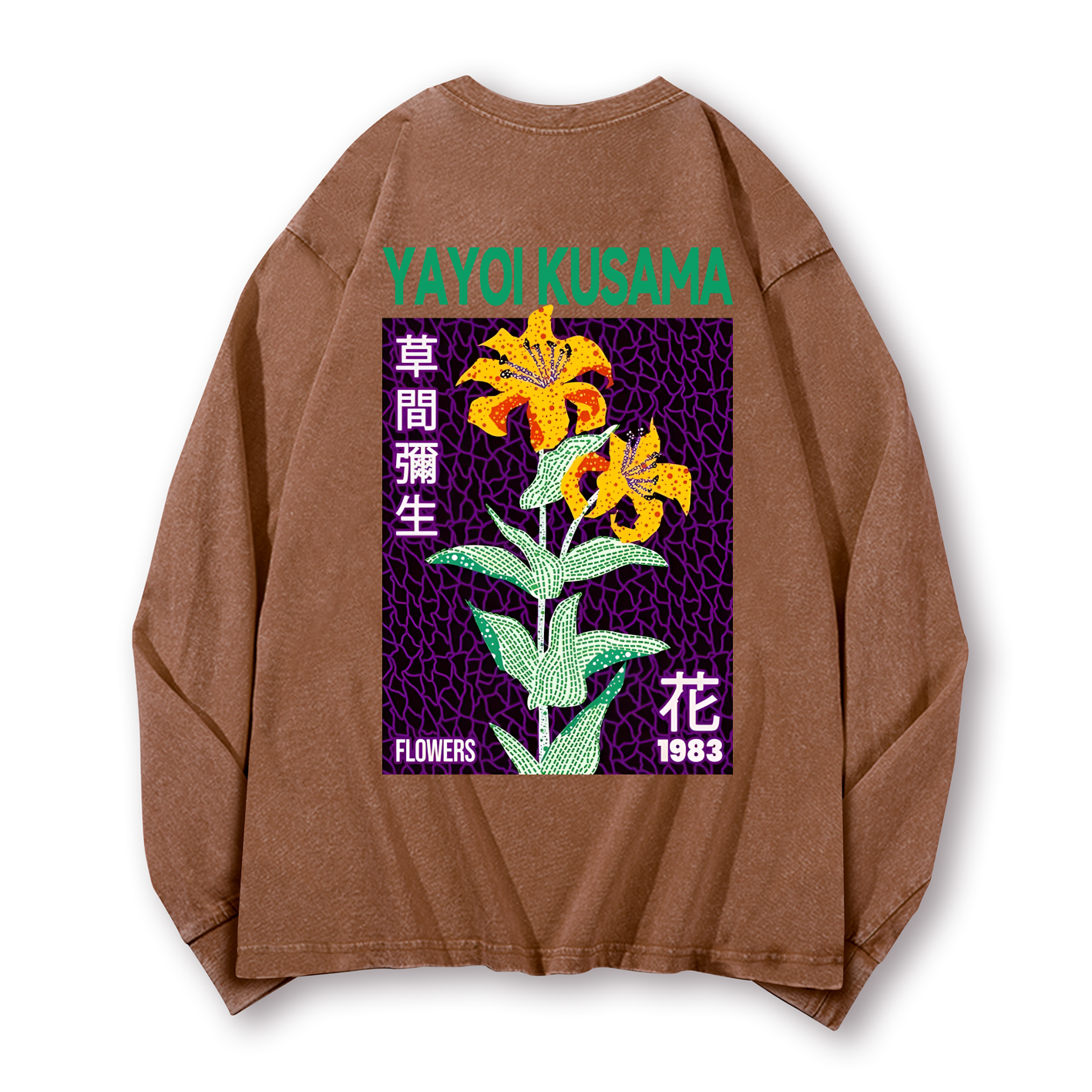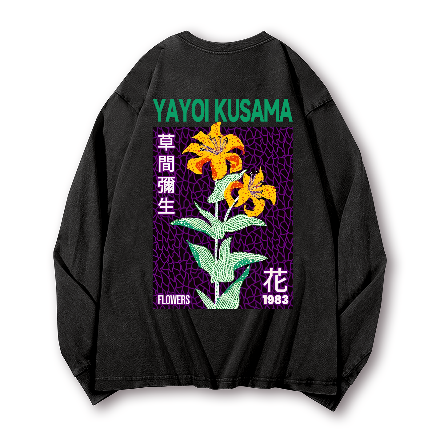 Yayoi Kusama Flower Vintage Washed Cotton Back Art Long-sleeve T-shirt