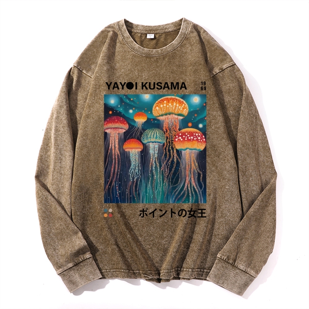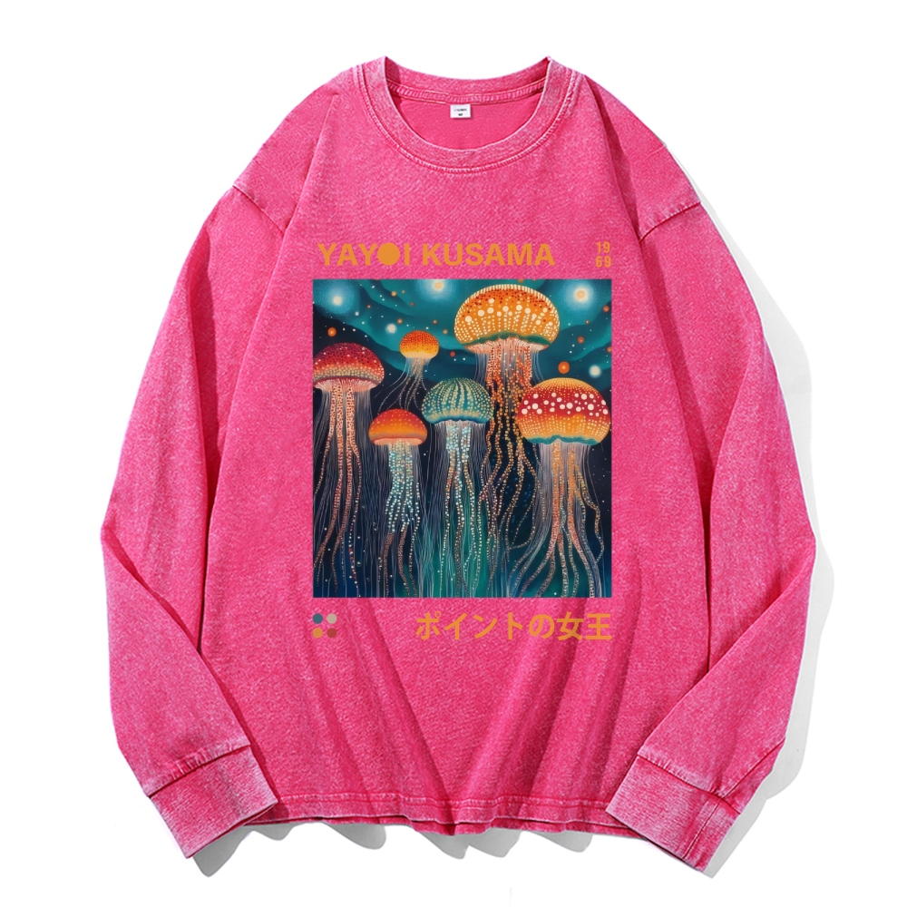 Yayoi Kusama Jellyfish Vintage Cotton Wash Crewneck Long-Sleeve T-Shirt