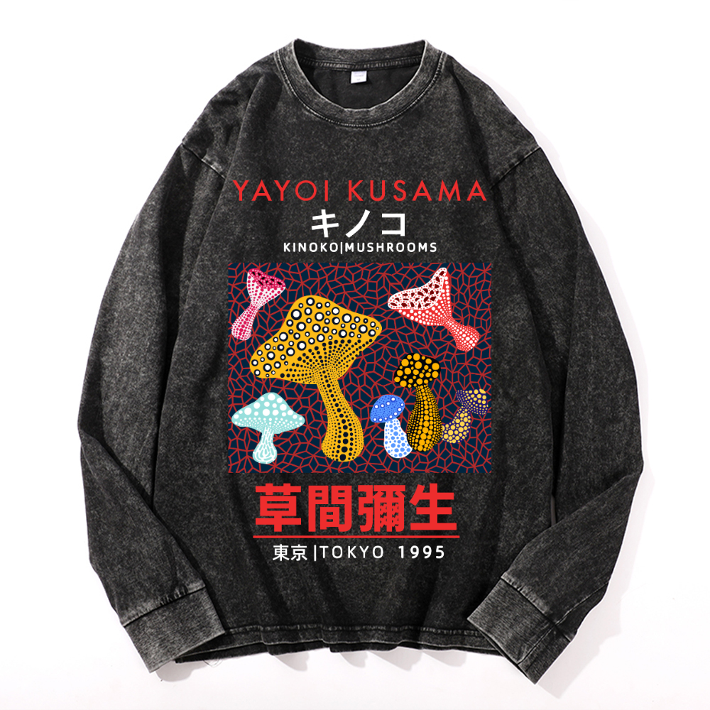 Yayoi Kusama Mushroom Vintage Cotton Wash Crewneck Sweatshirt