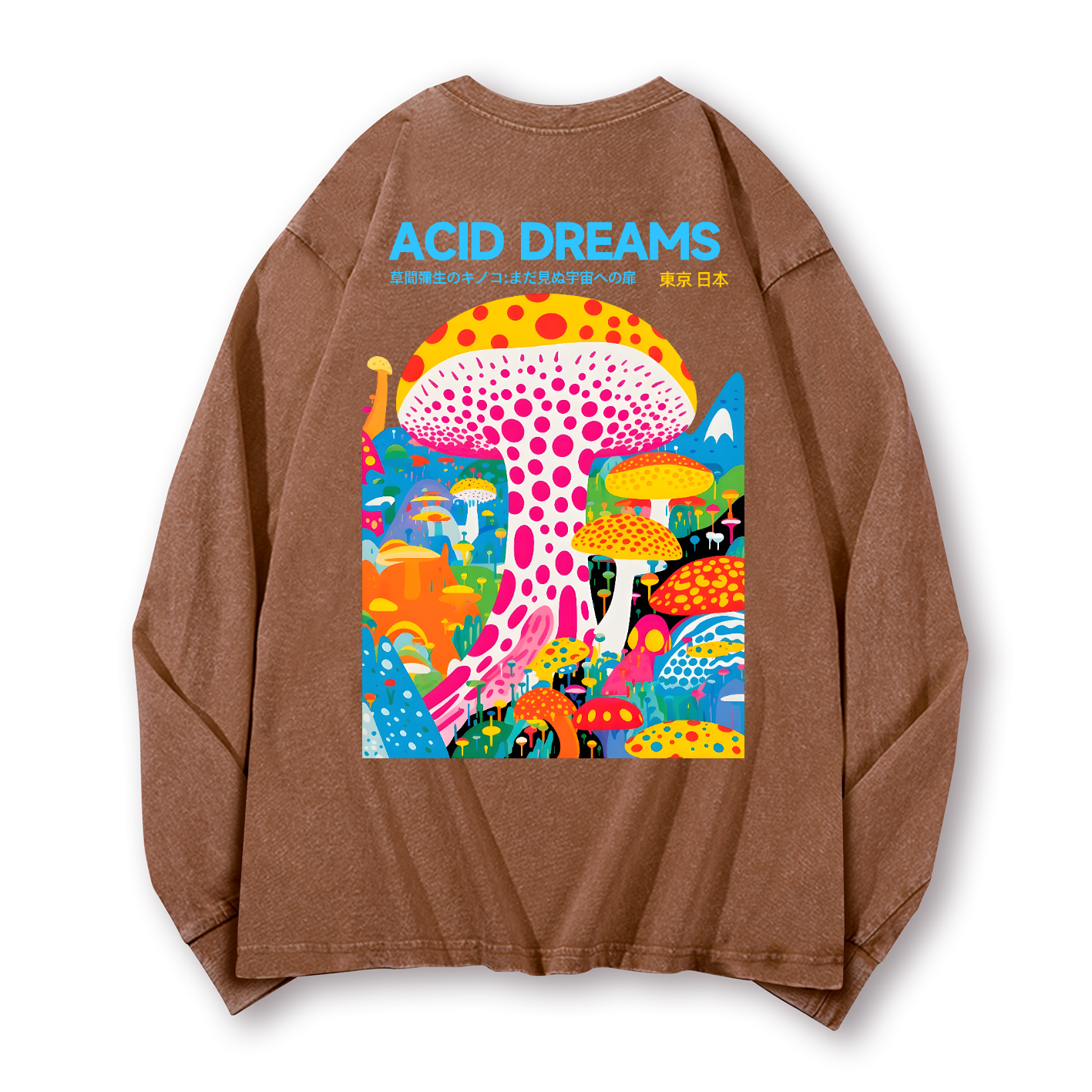 Yayoi Kusama Mushroom Vintage Washed Cotton Back Art Long-sleeve T-shirt