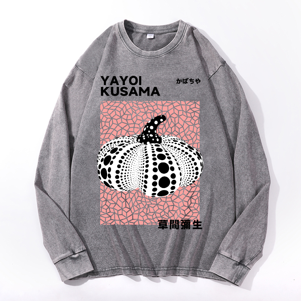 Yayoi Kusama Pumpkin Vintage Cotton Wash Crewneck Sweatshirt