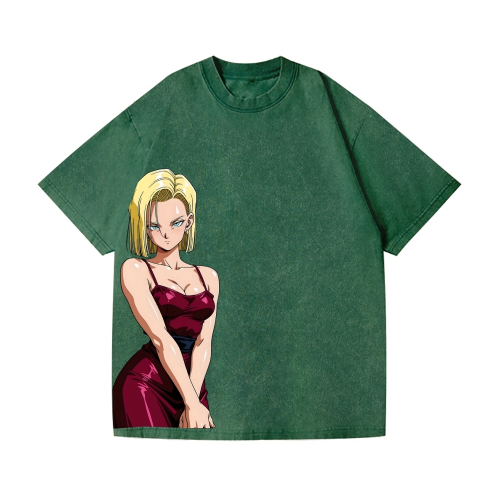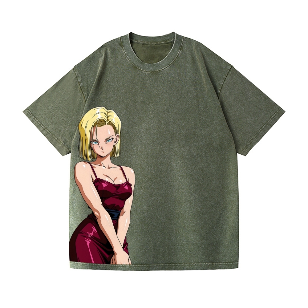 DB Android 18 Vintage Wash Japanese Design T-Shirt