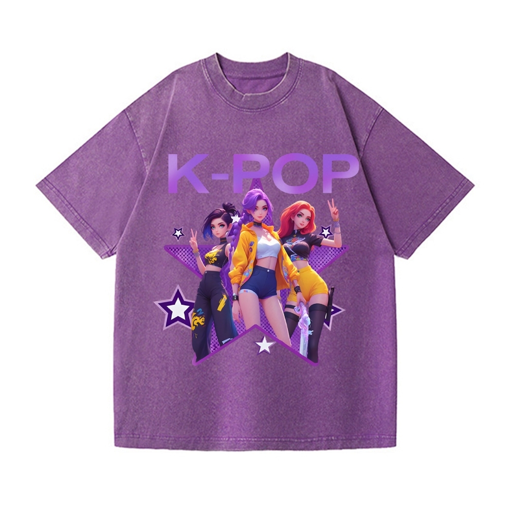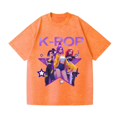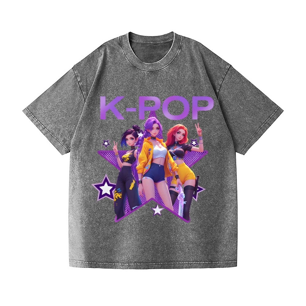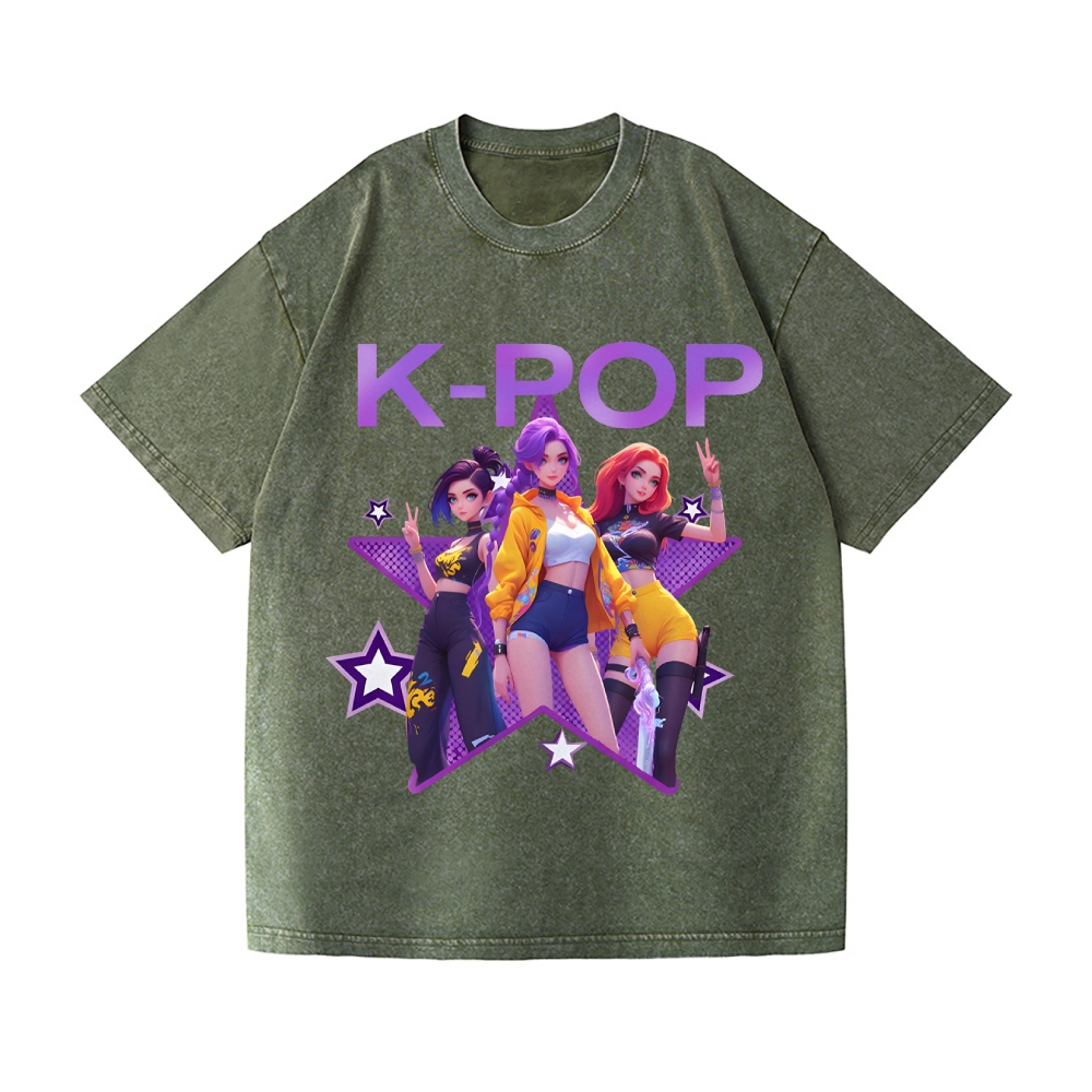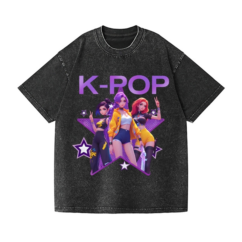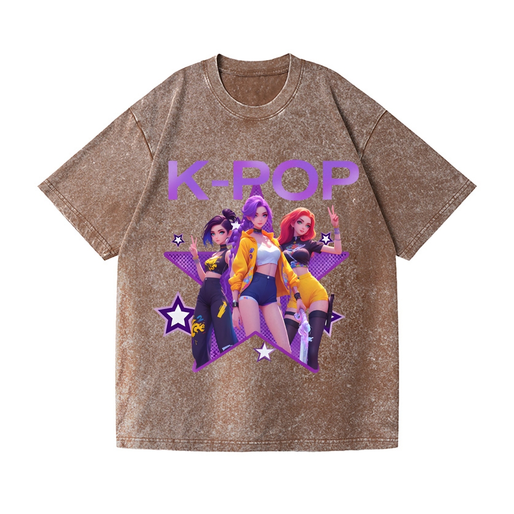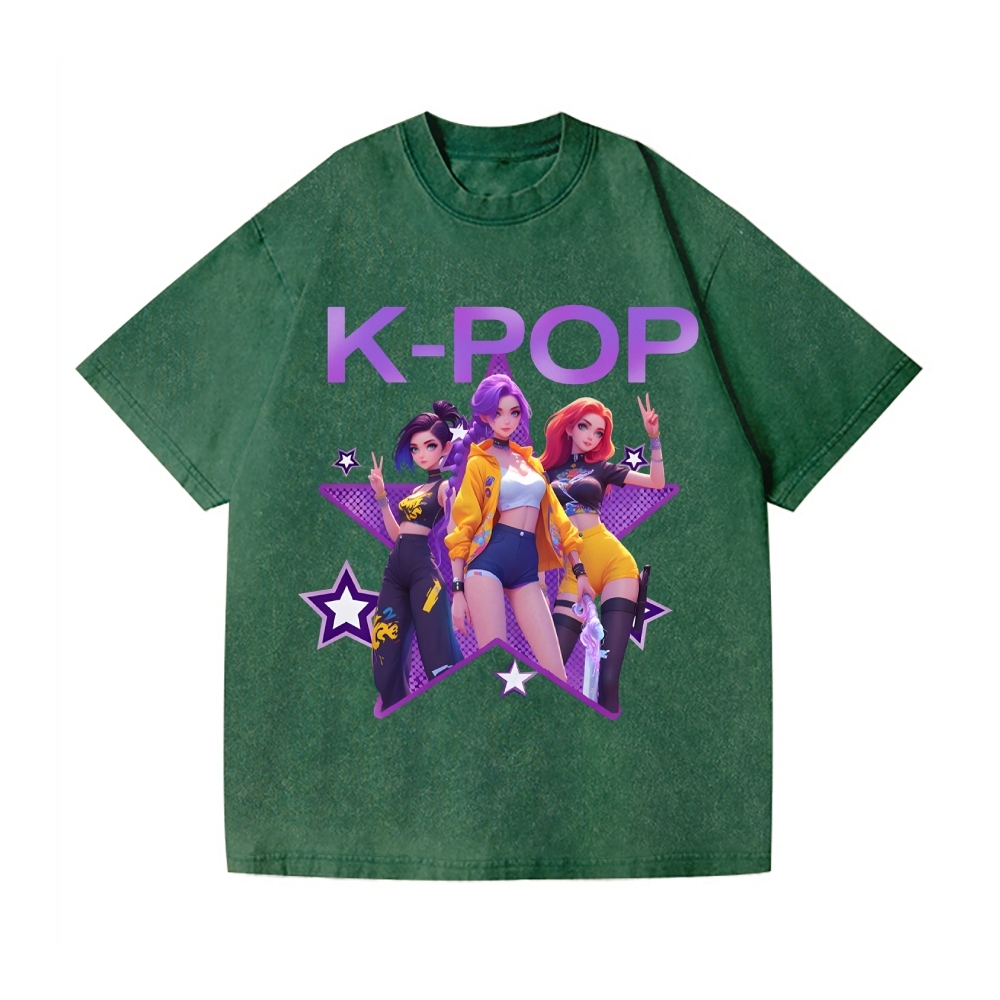 K Pop Demon Hunter Vintage Wash Japanese Design T-Shirt