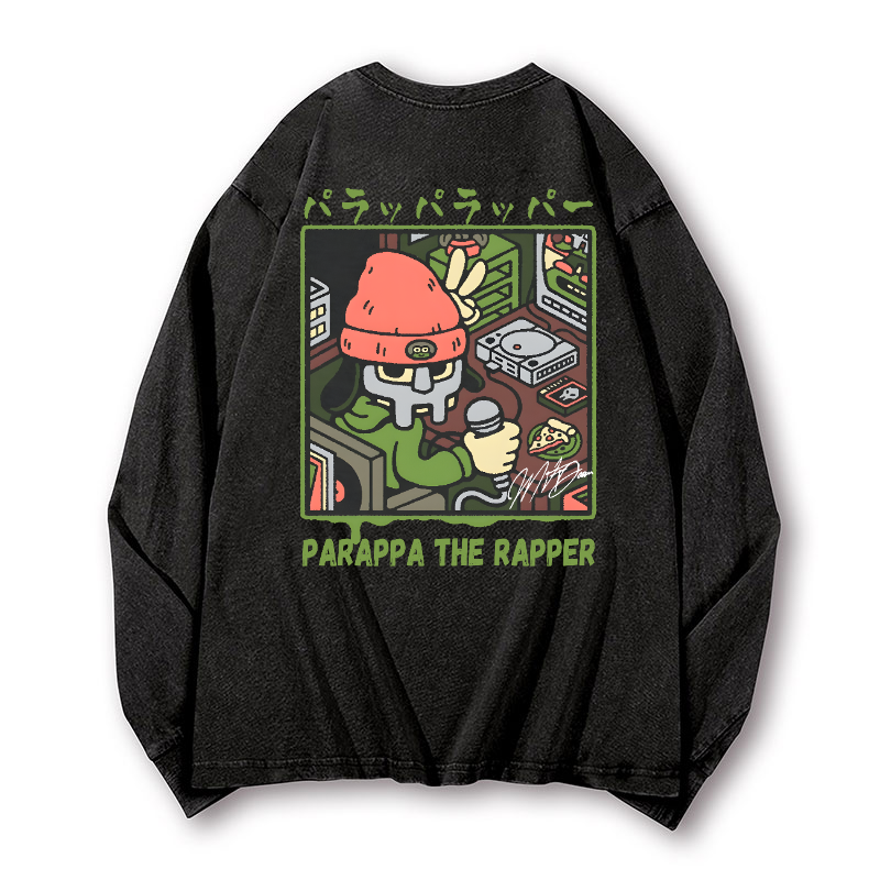PaRappa the Rapper Vintage Washed Cotton Back Art Long-sleeve T-shirt