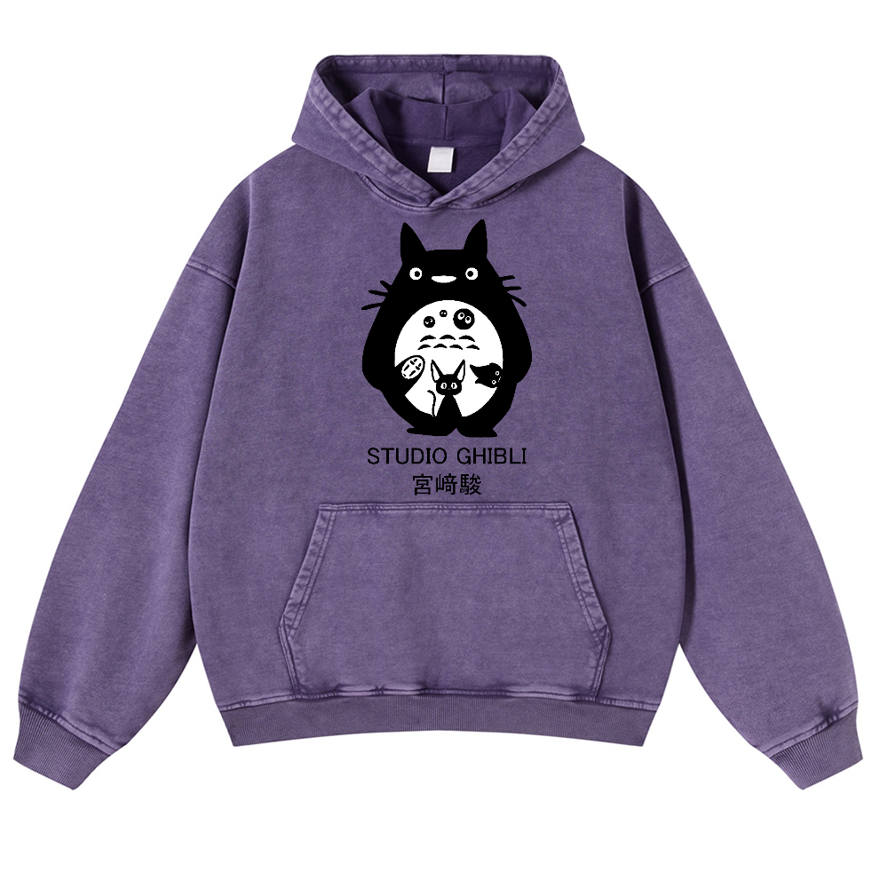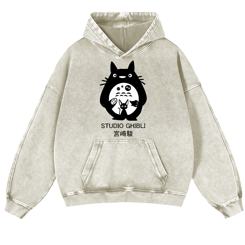 Ghibli Anime Vintage Washed Thick Cotton Hoodie