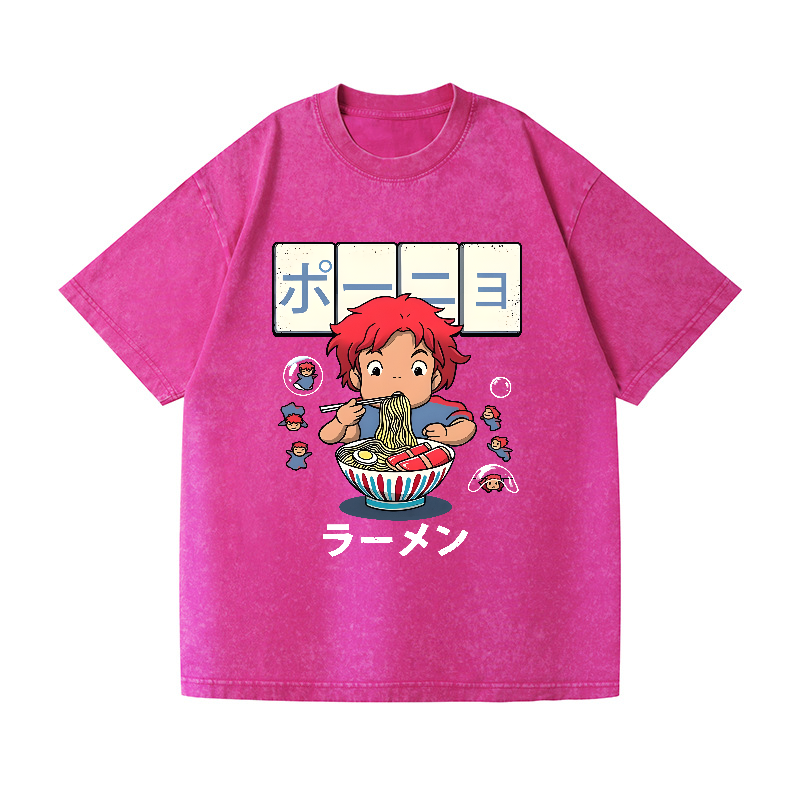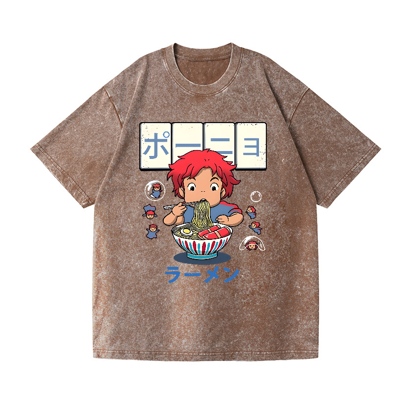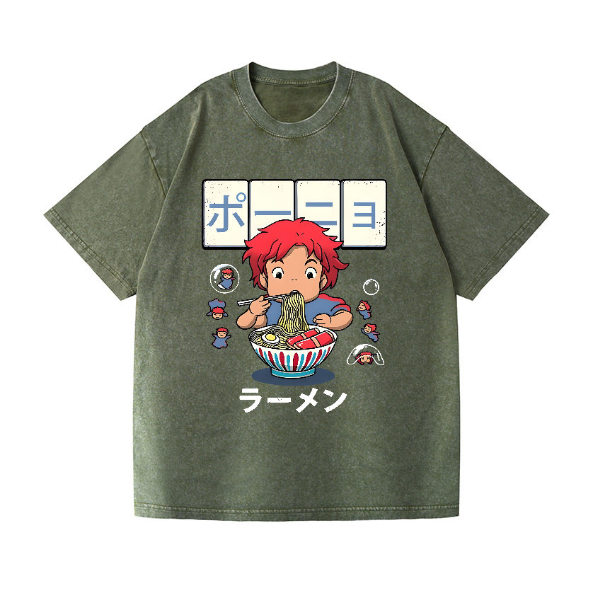Ghibli Ponyo Ramen Anime Vintage Wash Japanese Design T-Shirt