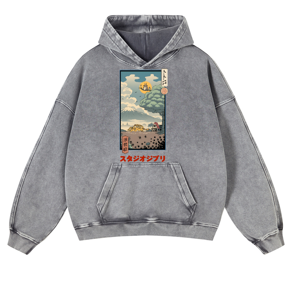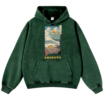 Ghibli Totoro Anime Ukiyoe Vintage Washed Thick Cotton Hoodie