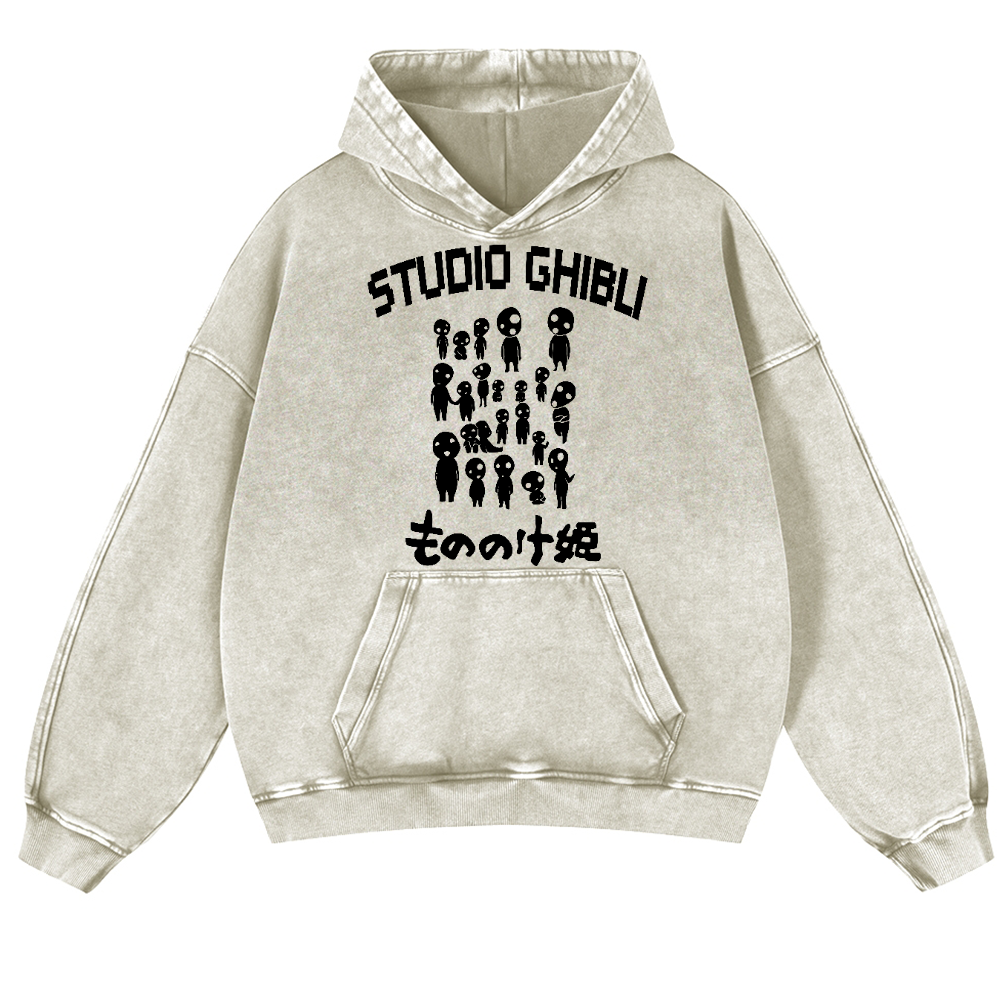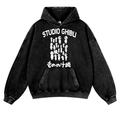 Ghibli Princess Mononoke Anime Vintage Washed Thick Cotton Hoodie